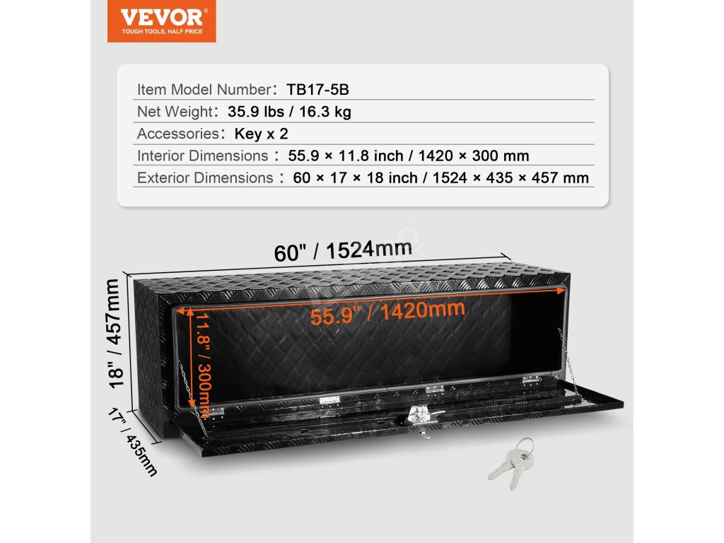 Jsou vaše věci uspořádané a snadno dostupné? Skříňka na nářadí VEVOR pod korbu rozšíří úložný prostor vašeho nákladního automobilu, přívěsu nebo jiného velkého vozidla. Do této skříně pro nákladní automobily můžete uložit všechny potřebné věci, od nářadí pro údržbu až po kempinkové vybavení, a mít tak vše přehledně uspořádané.