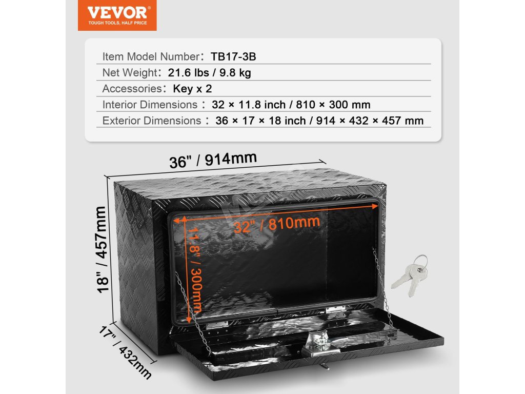 Jsou vaše věci uspořádané a snadno dostupné? Skříňka na nářadí VEVOR pod korbu rozšíří úložný prostor vašeho nákladního automobilu, přívěsu nebo jiného velkého vozidla. Do této skříně pro nákladní automobily můžete uložit všechny potřebné věci, od nářadí pro údržbu až po kempinkové vybavení, a mít tak vše přehledně uspořádané.