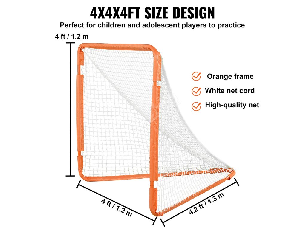 Tato branka na lakros na dvorku obsahuje rám a síť. S rozměry 4x4x4 stopy je speciálně navržena pro mladé hráče. Konstrukce nejenže odpovídá jinému vybavení nebo sportovištím stejného standardu, ale také umožňuje standardizované plánování a uspořádání hřiště.