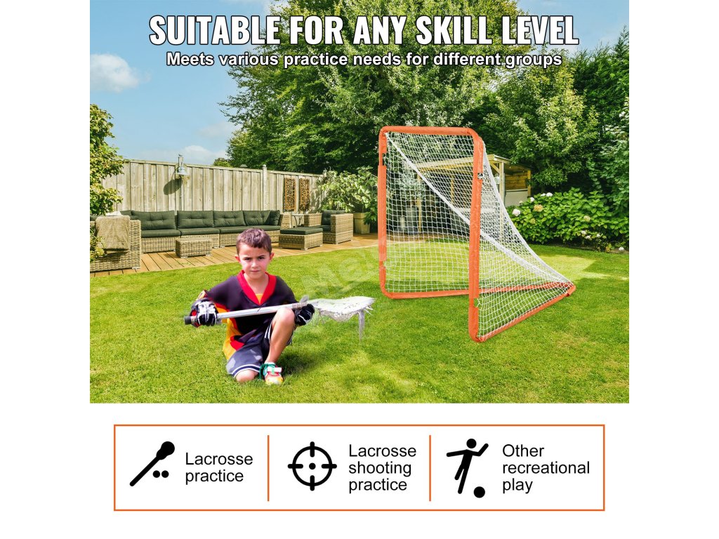 Tato mládežnická lakrosová branka je univerzální pro různé scénáře. Snadno se sestavuje, je pohyblivá a vhodná na dvorky, pláže, do parků nebo do jiných herních scénářů, takže je ideální pro mladé hráče, aby si procvičili střelecké a brankářské dovednosti.