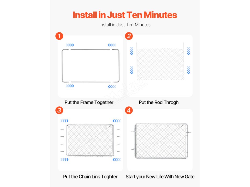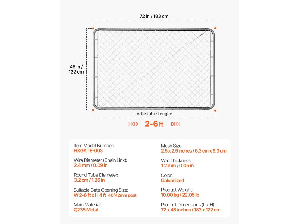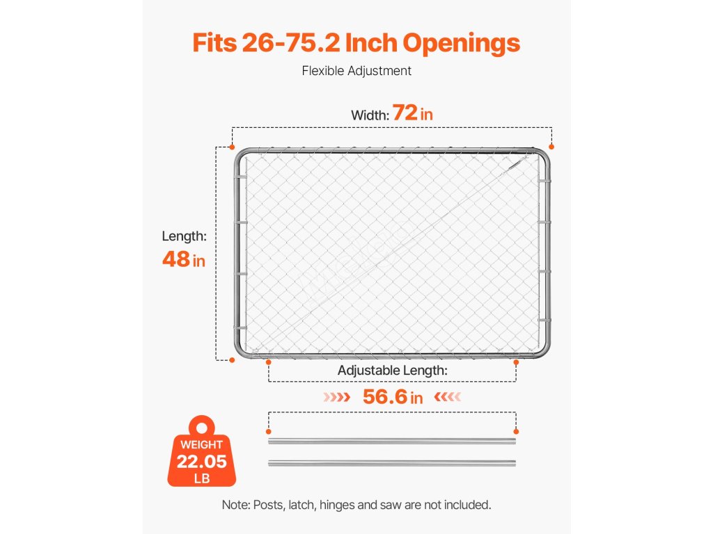 Brána z pletiva nastavitelná 72×48 in pro 2.2-6 ft × 6 ft pozinkovaná