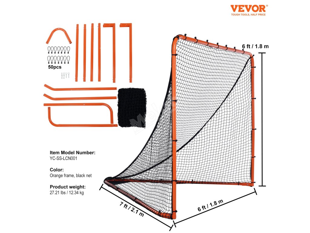 Lakrosová branka má pevnou a odolnou konstrukci, která zůstává spolehlivá a odolná vůči deformacím i při dlouhodobém používání. Je ideální pro začátečníky, středně pokročilé i pokročilé hráče pro lakrosový trénink, nácvik lakrosové střelby a další rekreační hry.