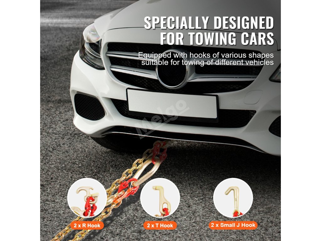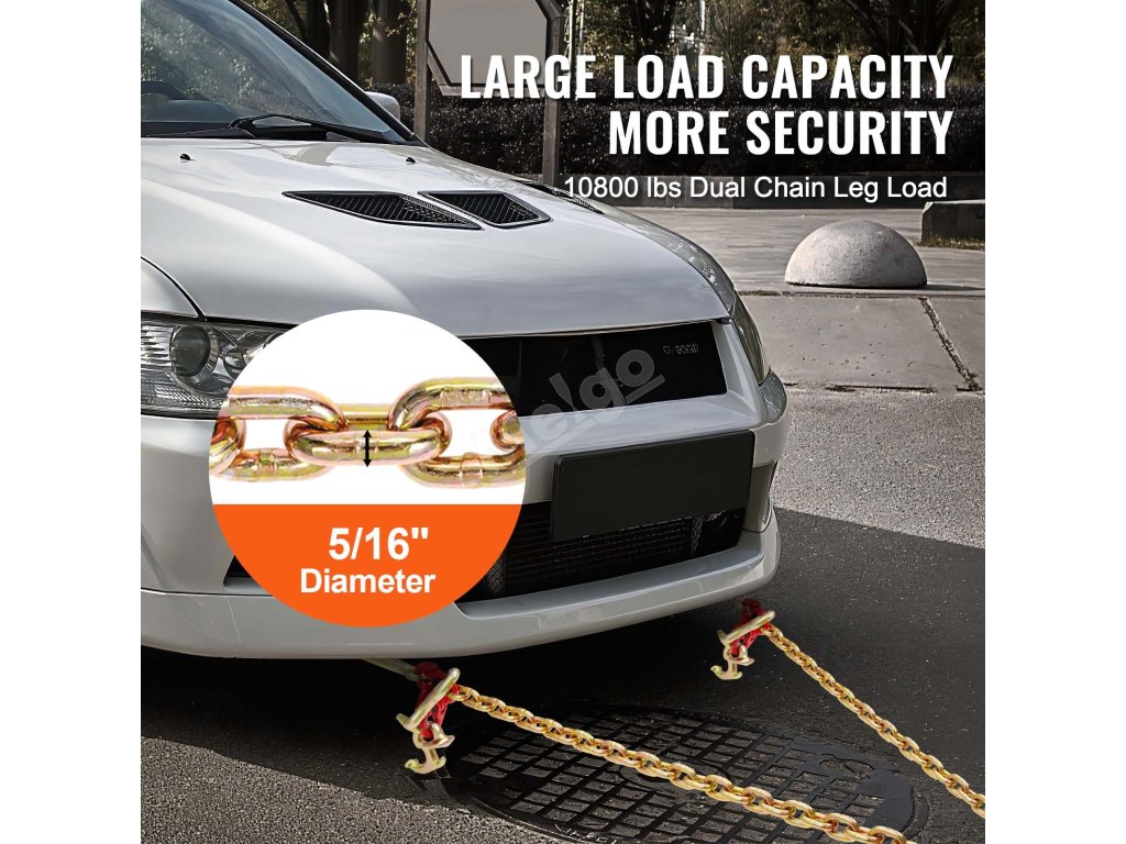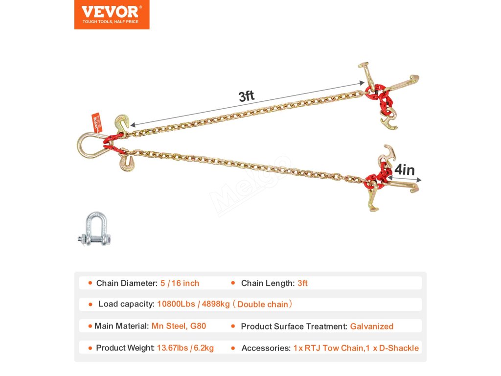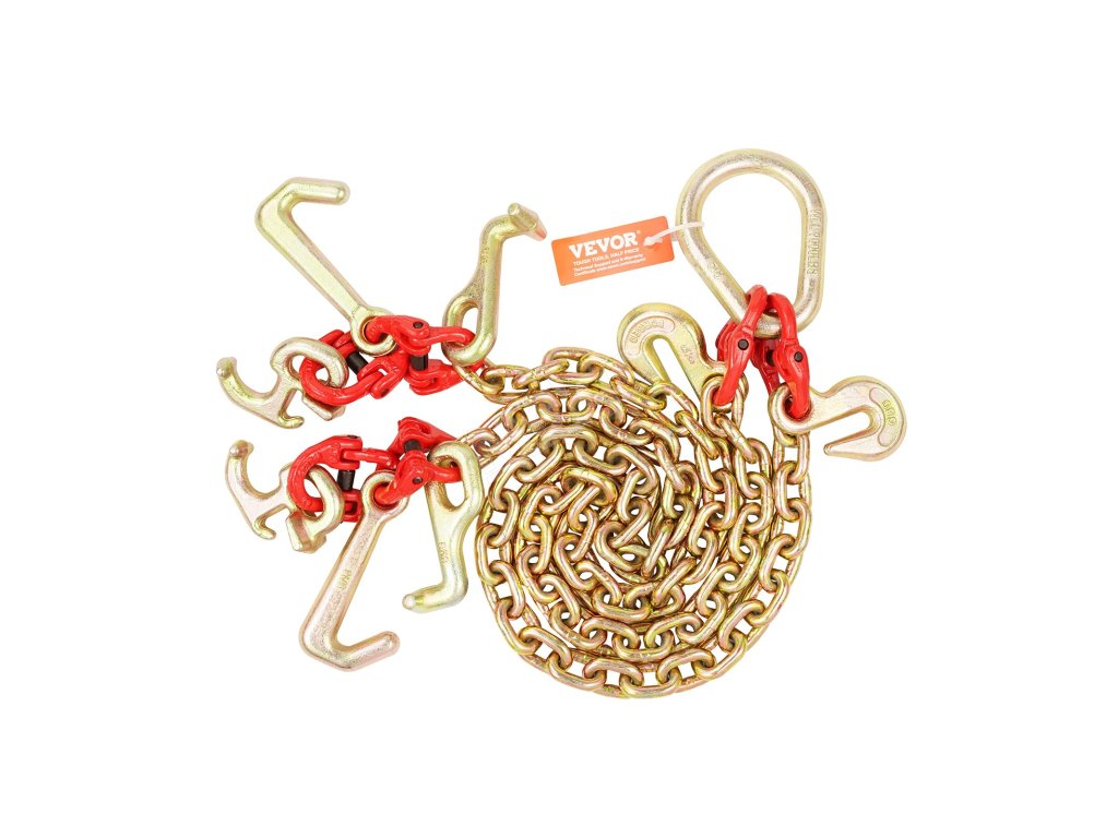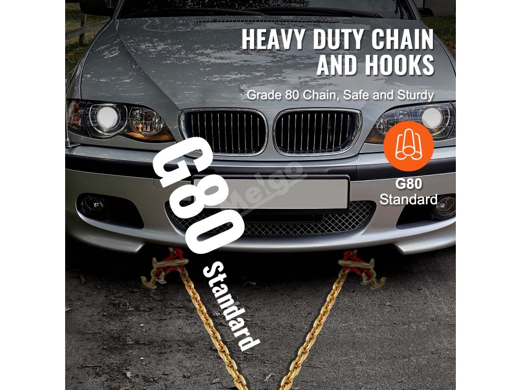 VEVOR, váš exkluzivní odborník na nářadí. Tento řetěz s uzdečkou ve tvaru V je vyroben z vysoce kvalitní oceli s celkovou pevností 80. stupně. Je také vybaven háky pro uchycení na různé typy vozidel.