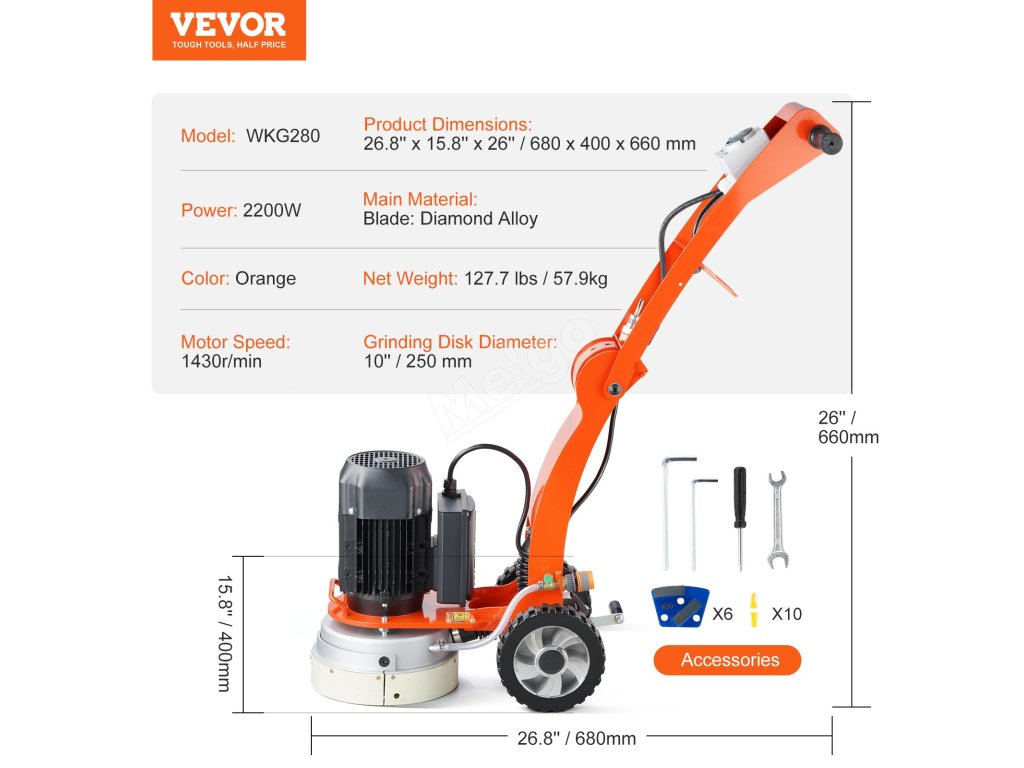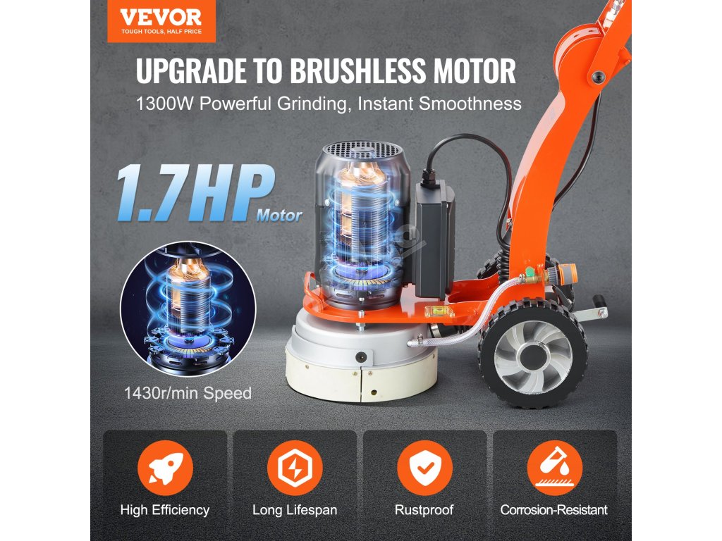Nástroje VEVOR - Váš profesionální společník! Naše bruska na beton poskytuje správný výkon a ovládání pro různé povrchy. Je nejlepší volbou pro broušení podlah. Tato bruska zvládne vše od komerčního až po průmyslové použití.