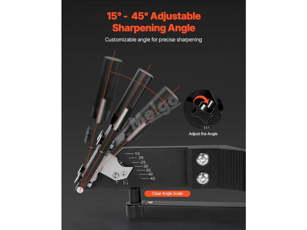Díky nastavovacímu knoflíku a přehledné úhlové stupnici umožňuje tento ostřič nožů sekaček snadno nastavit úhel ostření od 15° do 45°. Je vyroben z vysoce kvalitní hliníkové slitiny a nabízí dlouhou životnost pro konzistentní a spolehlivé výsledky.