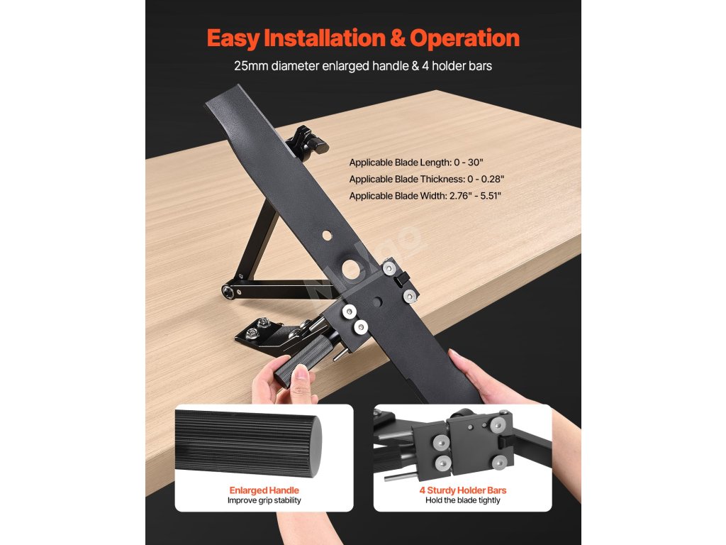 Ostřič žacích nožů VEVOR kombinuje širokou kompatibilitu a hladký chod pro profesionální ostření. Díky konstrukci s kuličkovými ložisky, 4 bezpečným držákům nožů, nastavitelnému úhlu 15° - 45° a 25mm zvětšené rukojeti zajišťuje snadné, efektivní a přesné ostření žacích nožů.