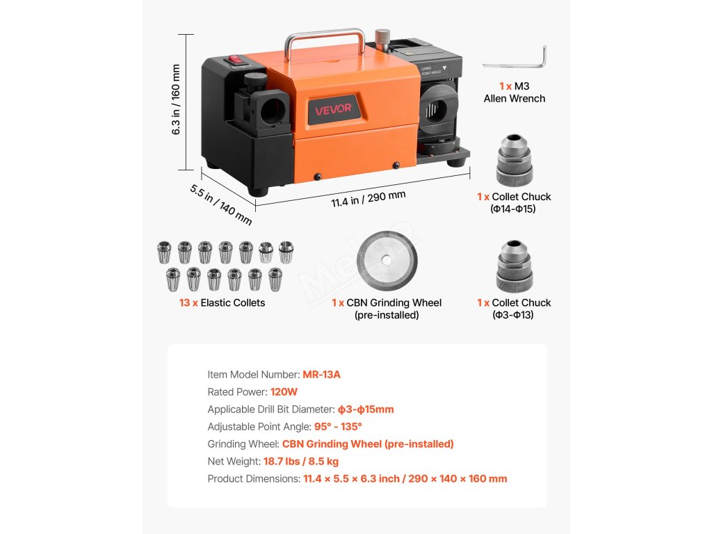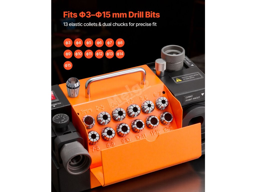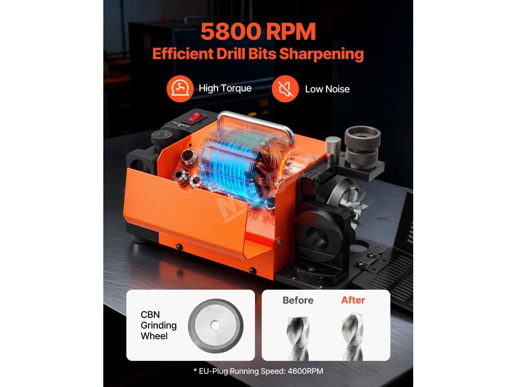 Profesionální bruska na vrtáky VEVOR 3-15 mm kombinuje přesné broušení, flexibilní nastavení úhlu, odolný brusný kotouč CBN a vysokorychlostní motor s otáčkami 4600 ot/min. Rychle obnovuje ostrost vrtáků, takže vrtání je hladší, rychlejší a efektivnější.