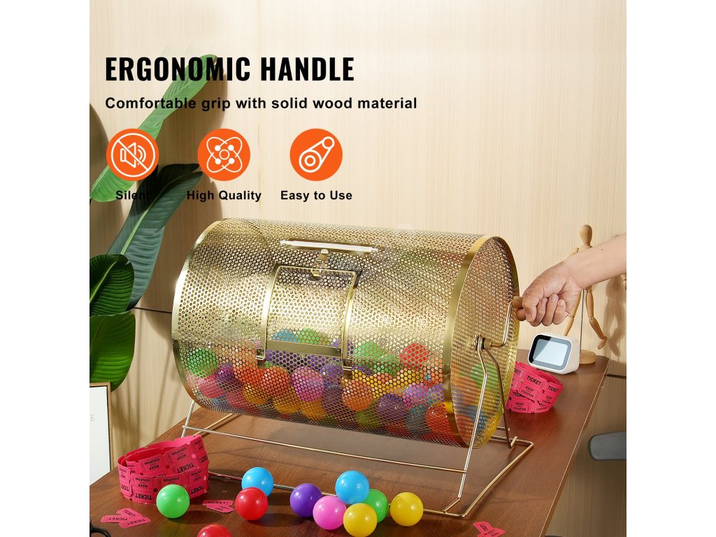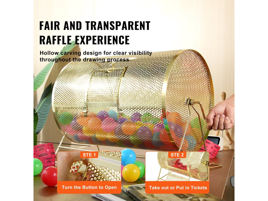 Náš pečlivě vyrobený buben na tombolové lístky kombinuje odolnost, eleganci a velkou kapacitu. Jeho velká kapacita snadno pojme množství losů nebo pingpongových míčků. Dutá konstrukce zajišťuje naprostou náhodnost a přehlednost v celém procesu tomboly.