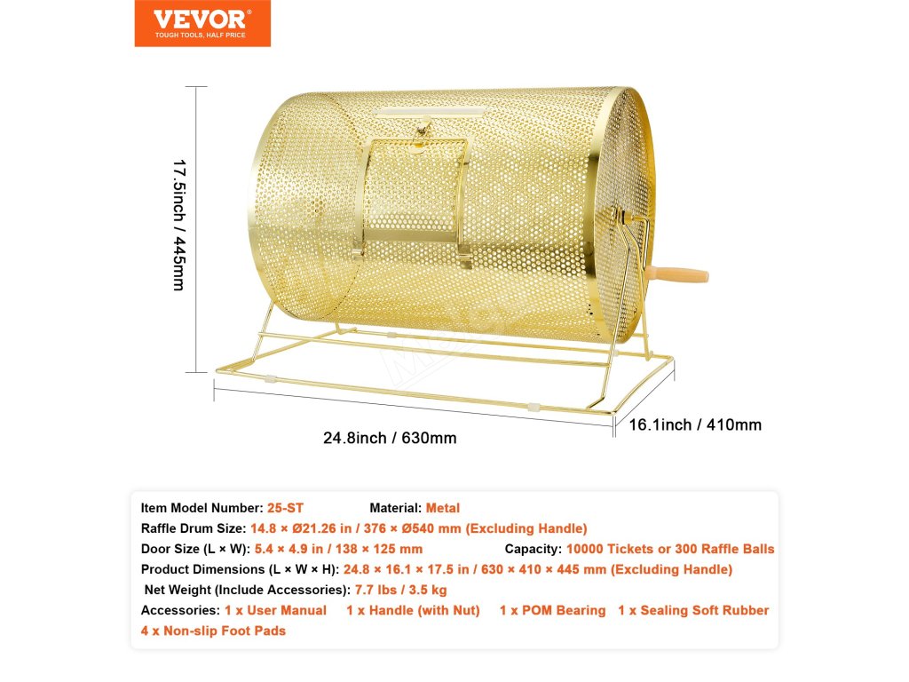 Buben na losování 14.8ר21.26 inch, 10000 lístků/300 míčků