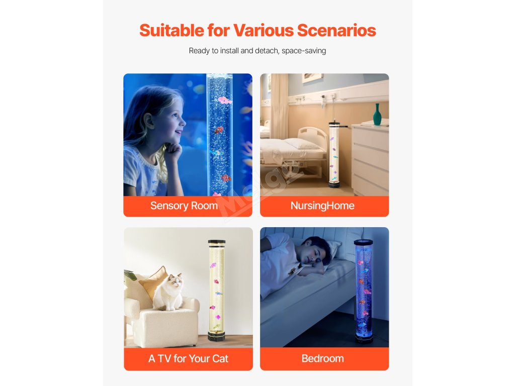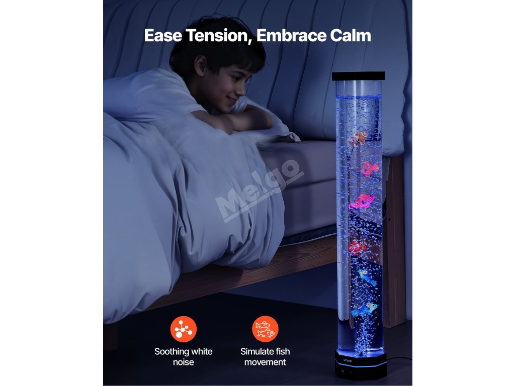 Naše smyslová bublinková lampa je ideální pro zmírnění každodenního stresu a pomáhá vytvořit klidnou, relaxační atmosféru, která zlepší vaši náladu.