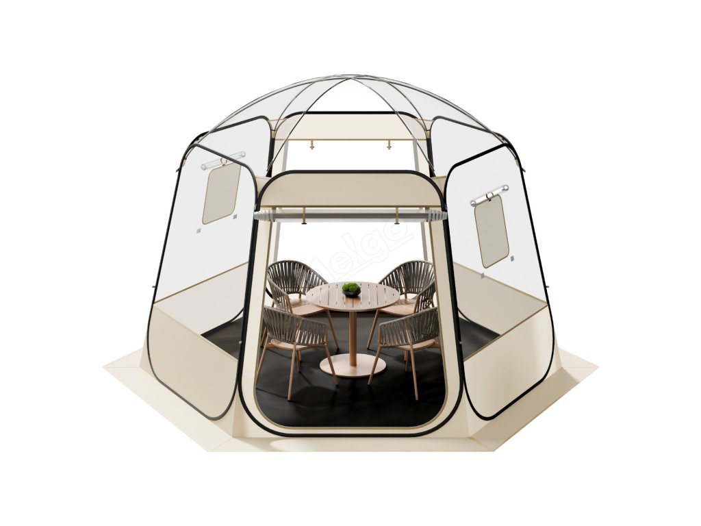 Průhledný pop-up bublinkový stan pro venkovní použití