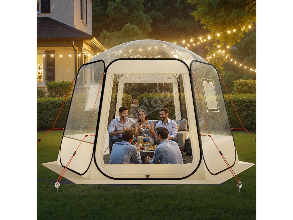 Bublový stan 3.05×2.75 m, průhledný, voděodolný, s okny 4–8 osob