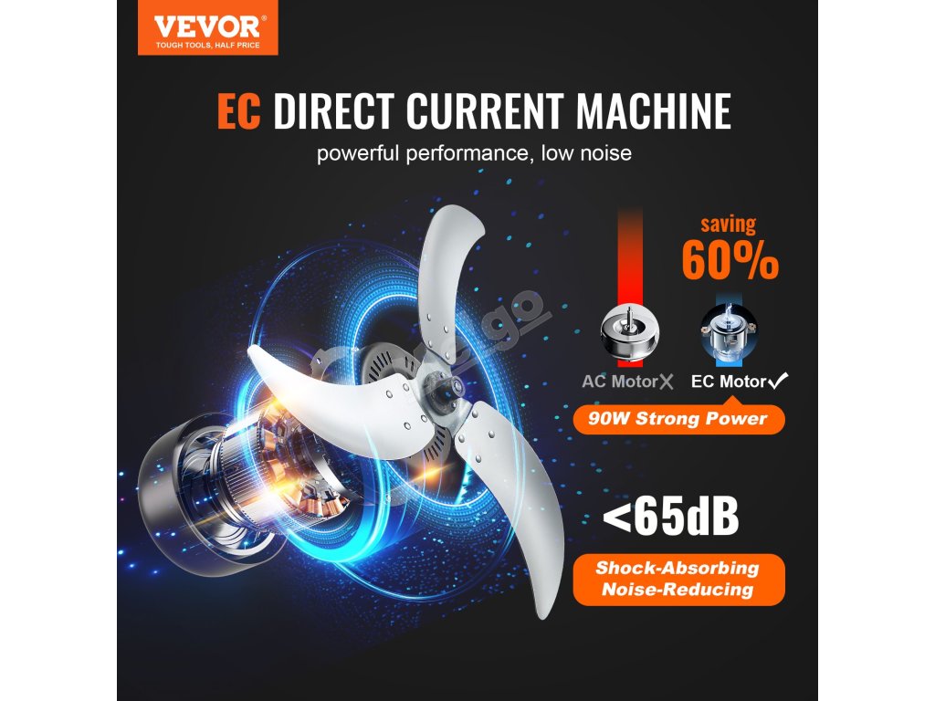 Priemyselný ventilátor VEVOR je vybavený vysokokvalitným motorom, ktorý zabezpečuje silný prúd vzduchu na efektívne vetranie. Jeho špecializovaná konštrukcia lopatiek zlepšuje pohyb vzduchu a zabezpečuje silné a stabilné prúdenie vzduchu pre svieže a pohodlné pracovné prostredie.