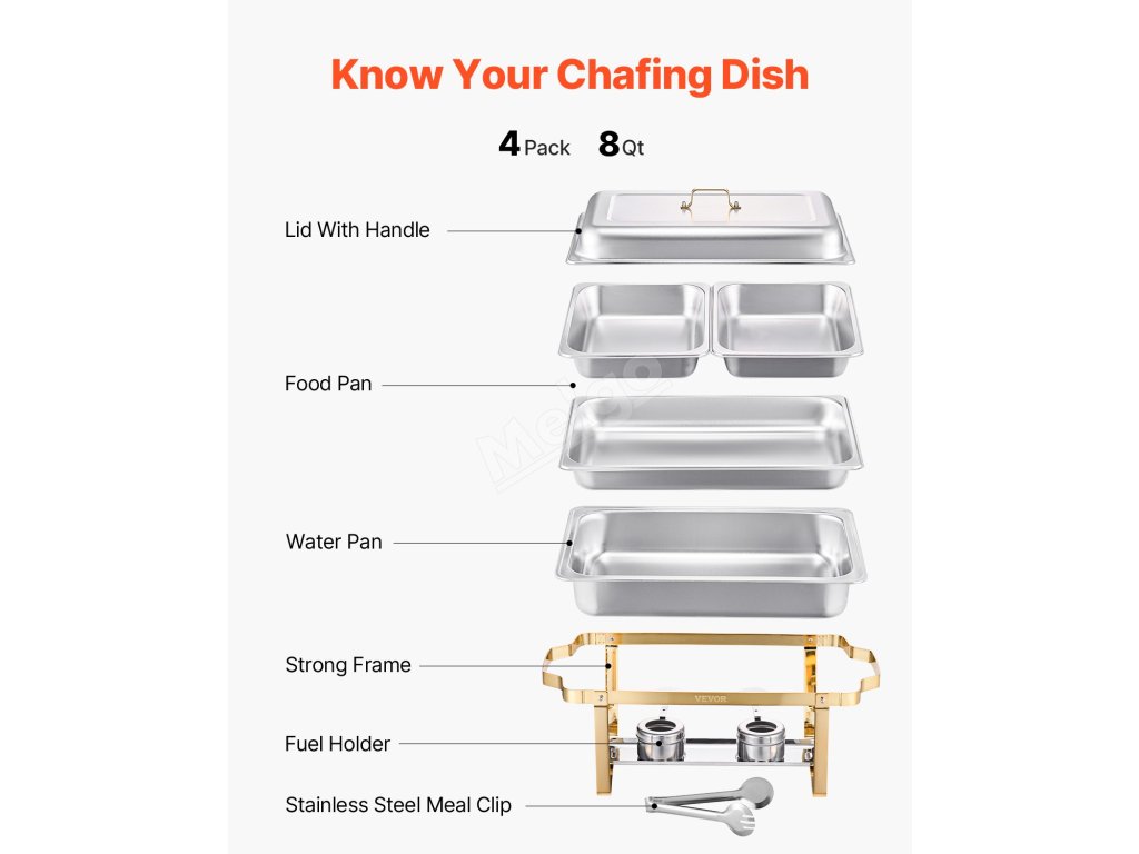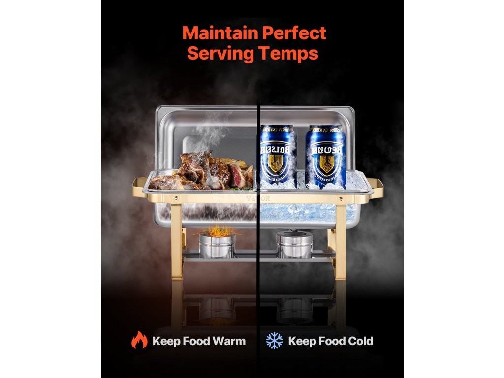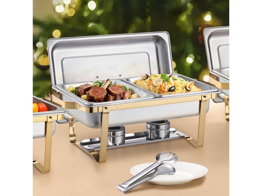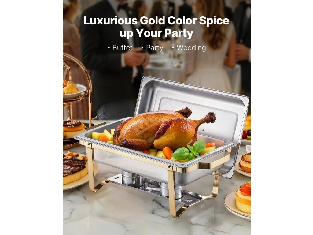 Bufetový ohřívač 8 qt, 4 ks, nerez, zlatý, 2 plné + 4 poloviční