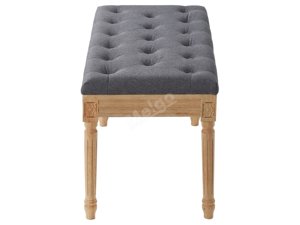 Povrch je vybaven knoflíkovým čalouněním, jednoduchým a velkorysým. Sedák je vyroben z paměťové pěny pro silný odraz a pohodlné sezení. Nohy z masivního dřeva jsou pečlivě vyřezávané. Gumové podložky na nohách zabraňují poškrábání jakékoli podlahy a snižují hluk způsobený pohybem židle.