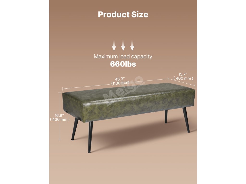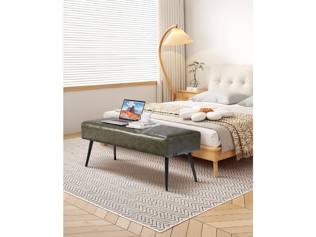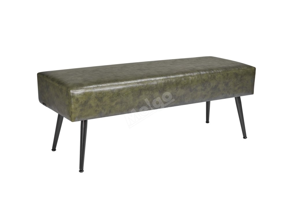 Čalouněná lavice do předsíně z pu kůže, kovové nohy, prošívaná, zelená