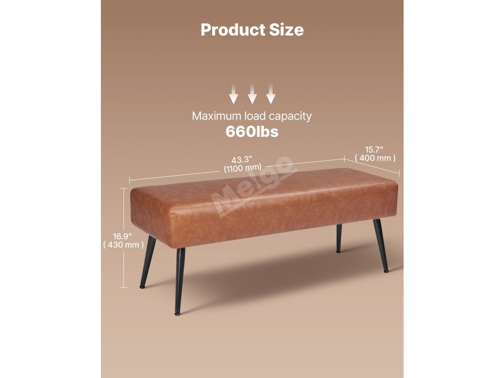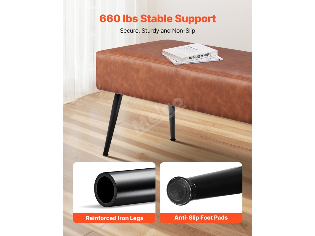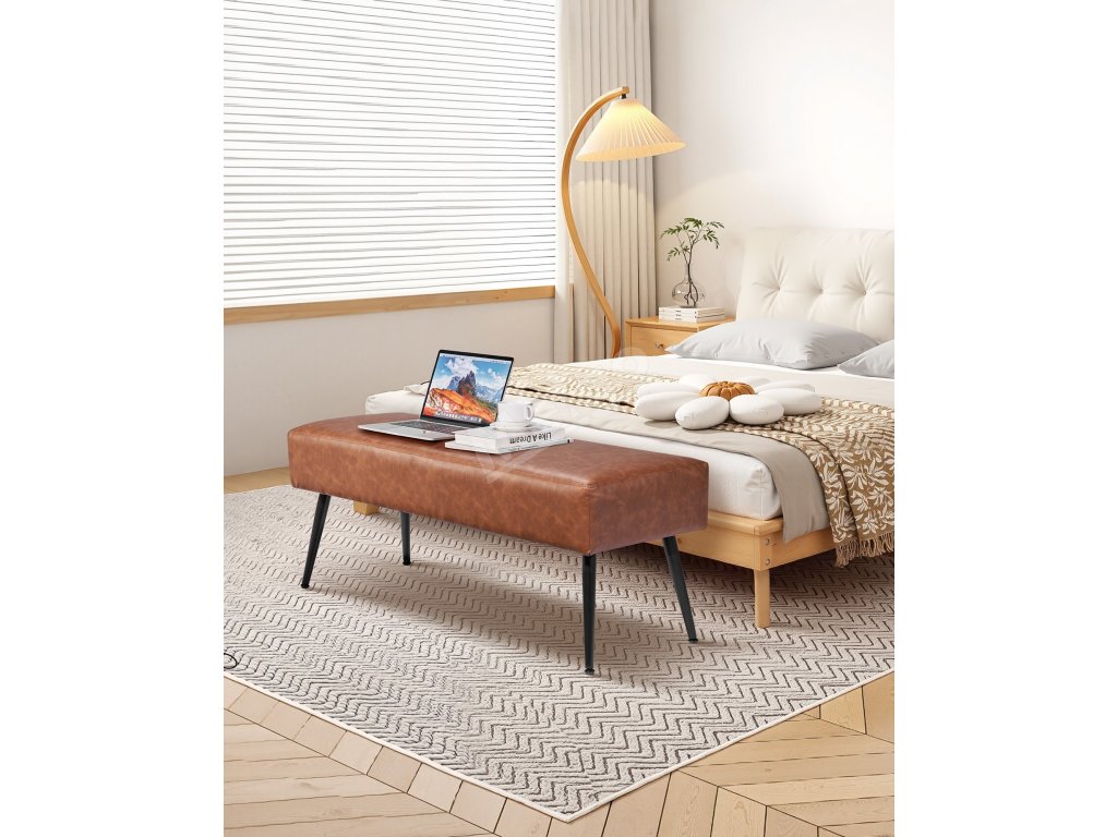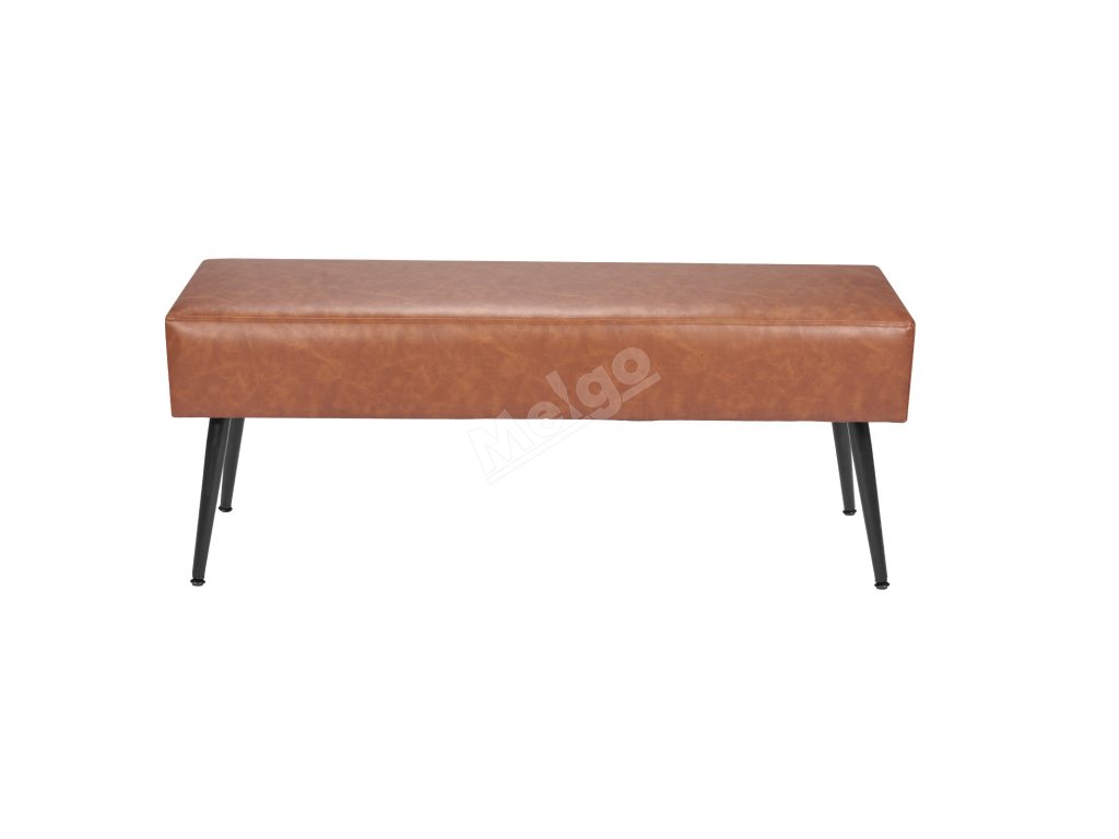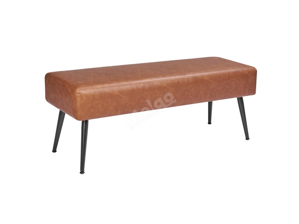 Čalouněná lavice z pu kůže s kovovýma nohama a prošíváním, hnědá