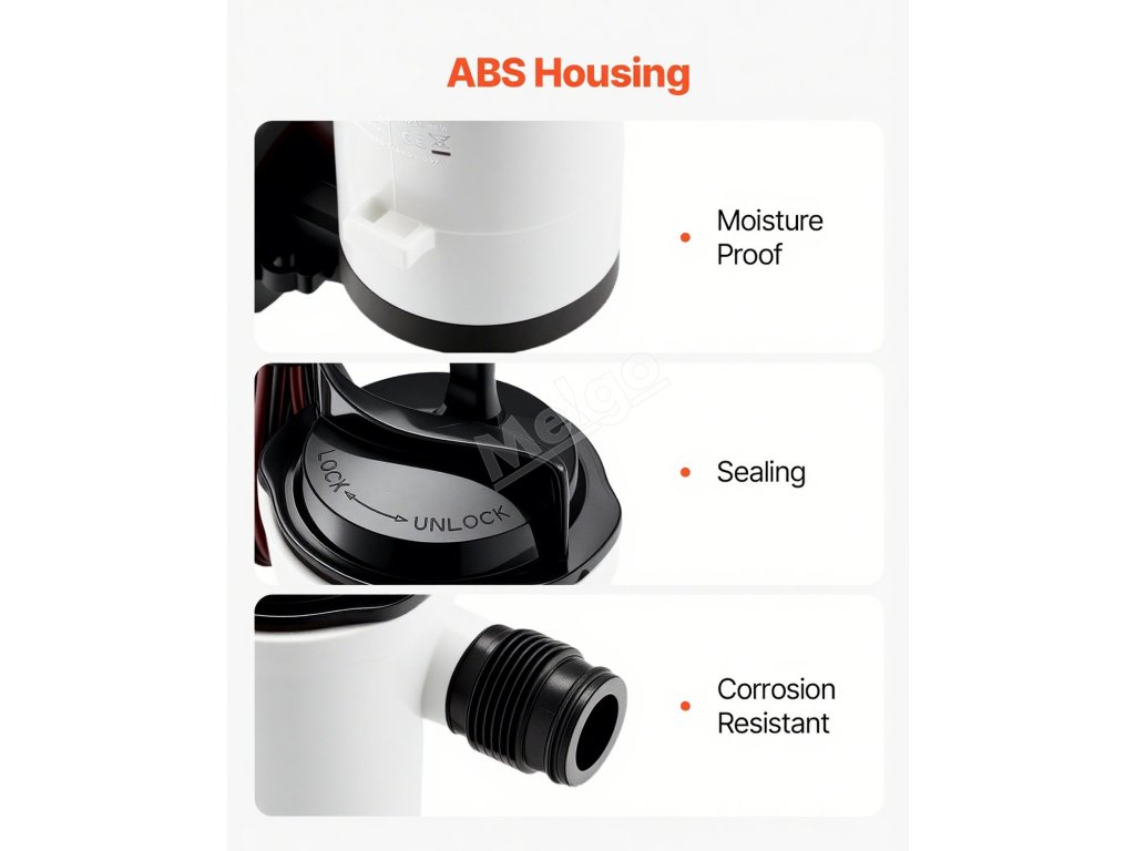 Díky materiálu pláště čerpadla z ABS může být zcela ponořeno do vody, přizpůsobí se prostředí, jako je mořská i sladká voda, a je vysoce odolné proti korozi, což z něj činí spolehlivé čerpadlo do prostor pro lodní návnady.
