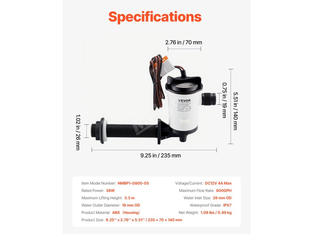 Dejte sbohem nedostatečnému okysličování pomocí tohoto čerpadla 800GPH pro vaši loď, které zvyšuje cirkulaci vody a hladinu kyslíku. Snadno se instaluje díky odolnému pouzdru z ABS a je ideální pro sladkou i slanou vodu. Udržujte své ryby a návnady v dobré kondici díky tomuto účinnému čerpadlu do živých prostorů pro lodě.