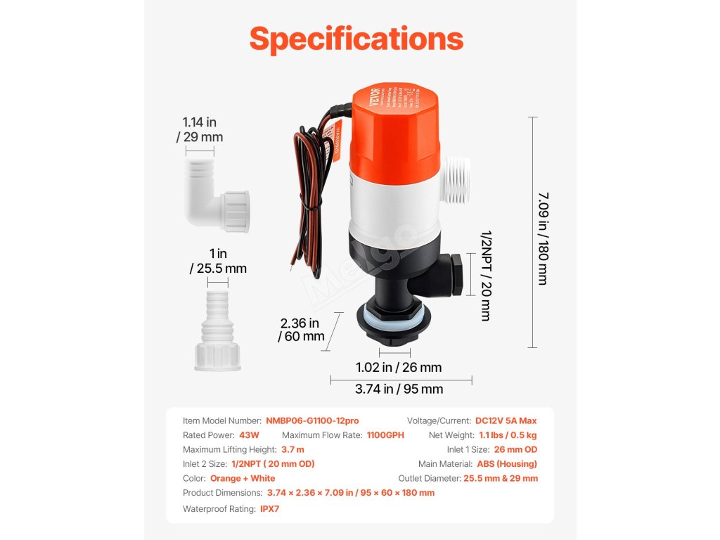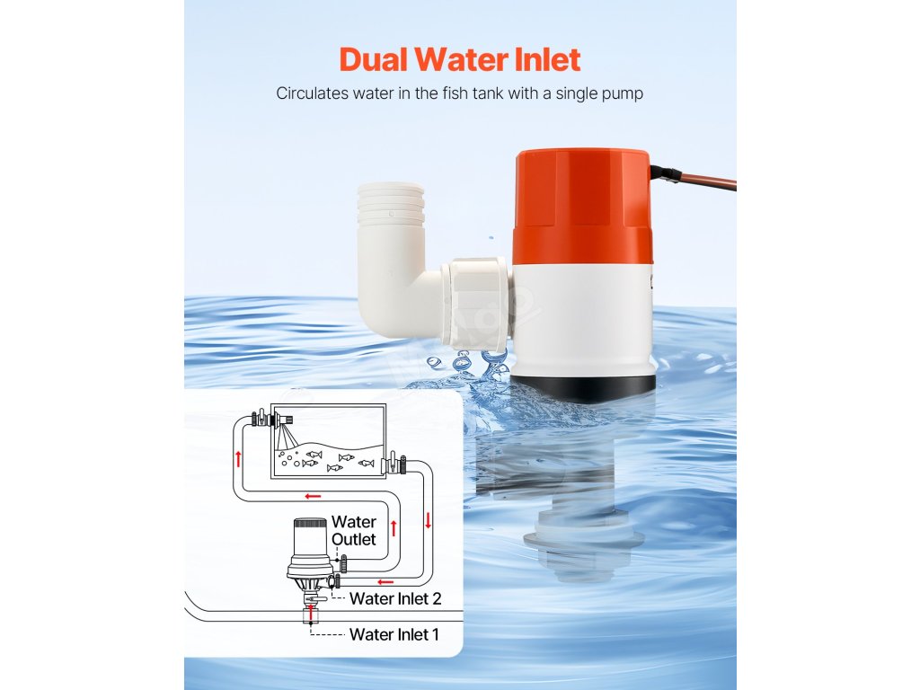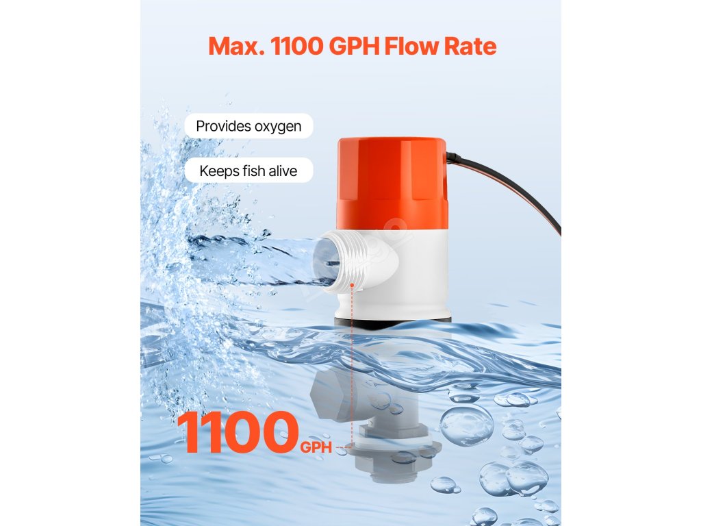 Rozlučte se s nízkým obsahem kyslíku pomocí tohoto čerpadla 1100 GPH pro lodě. Díky dvěma vstupům zlepšuje cirkulaci vody a podporuje lepší přežití ryb. Snadná instalace a odolný kryt z ABS z něj činí ideální čerpadlo do živých prostor pro lodě. Je kompaktní, spolehlivé a snadno se používá.