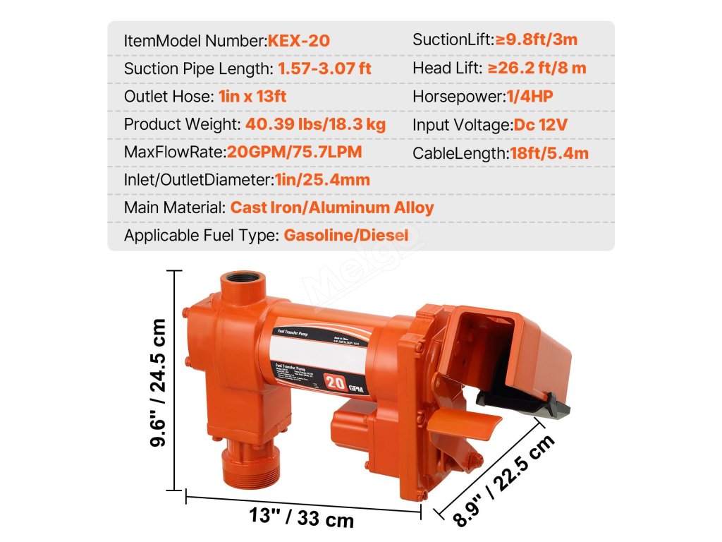 Sada palivového čerpadla VEVOR 12V 20GPM odolná proti výbuchu
