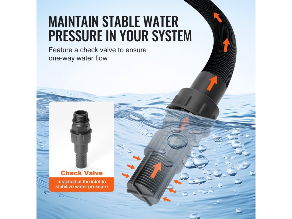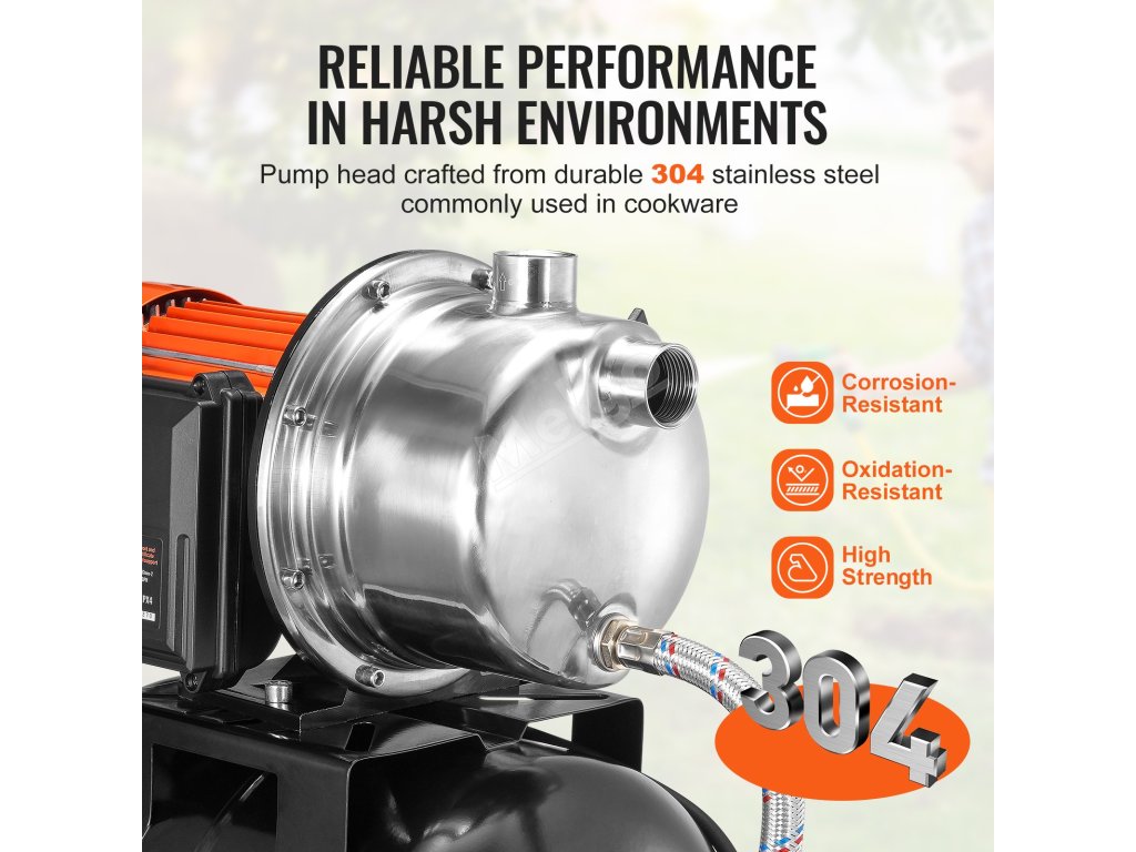 Toto čerpadlo do mělkých studní s tlakovou nádrží, které se může pochlubit maximálním výkonem 50 m a průtokem 5 600 l/H (1 320 GPH), účinně zvládá dopravu vody na velké vzdálenosti. Jeho působivá schopnost sacího zdvihu 26,3 ft (8 m) umožňuje čerpání vody z hlubších studní nebo pramenů.