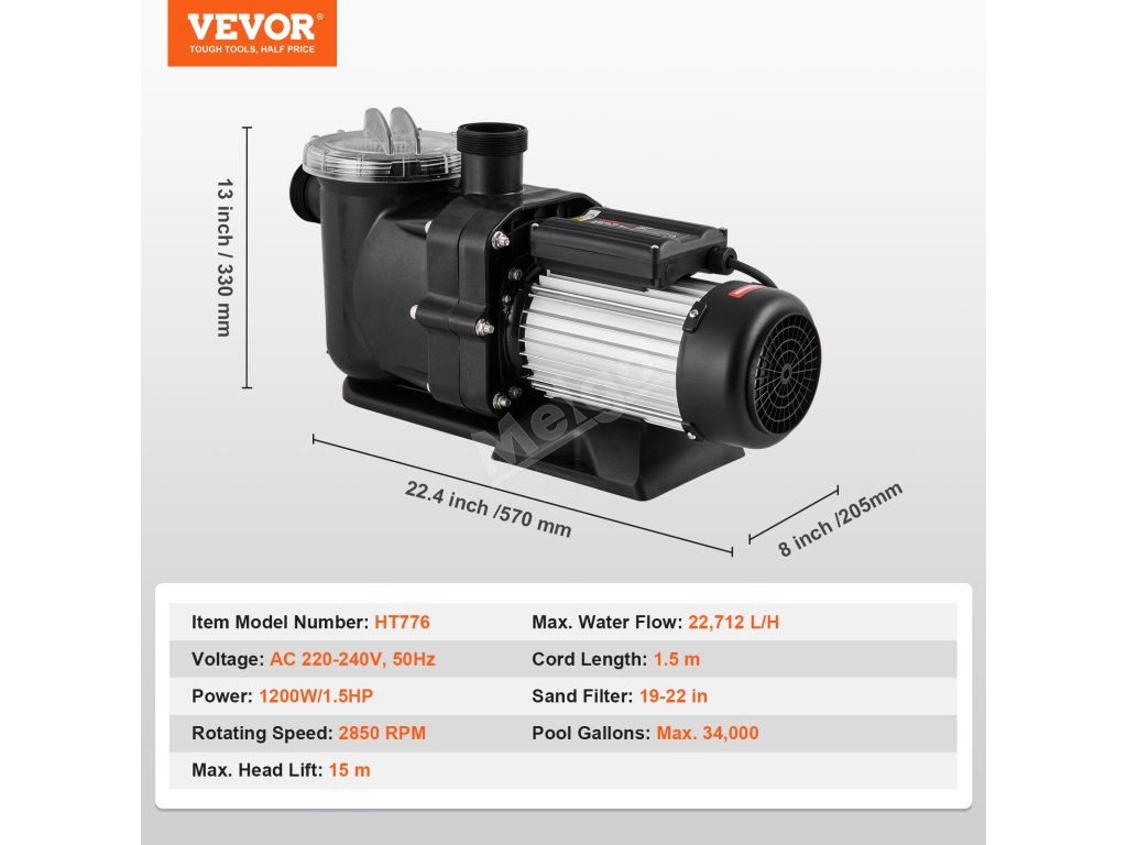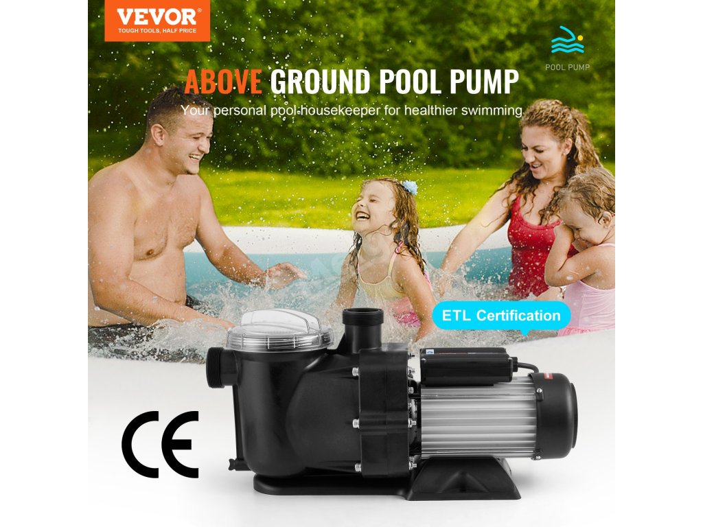 Představujeme vám naše čerpadlo pro nadzemní bazény s motorem o výkonu 1,5 HP s měděným drátem, maximálním průtokem 100 GPM a výškou hladiny až 15 m, které je ideální pro vířivky, lázně a dokonce i zavlažovací systémy. Filtrační koš udržuje váš bazén bez nečistot. Pozdravte péči o bazén bez námahy s naším bazénovým čerpadlem!