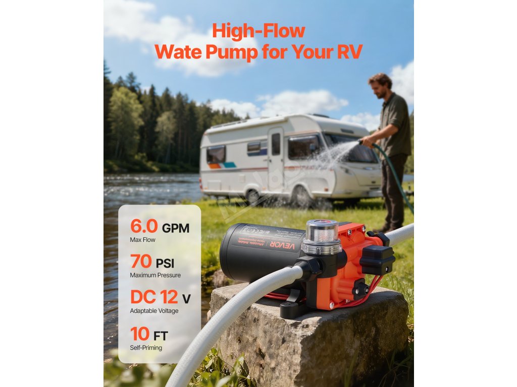 Čerpadlo vody 12 V 6 GPM/22,7 L/min s autom. tlakovým spínačem 70 PSI