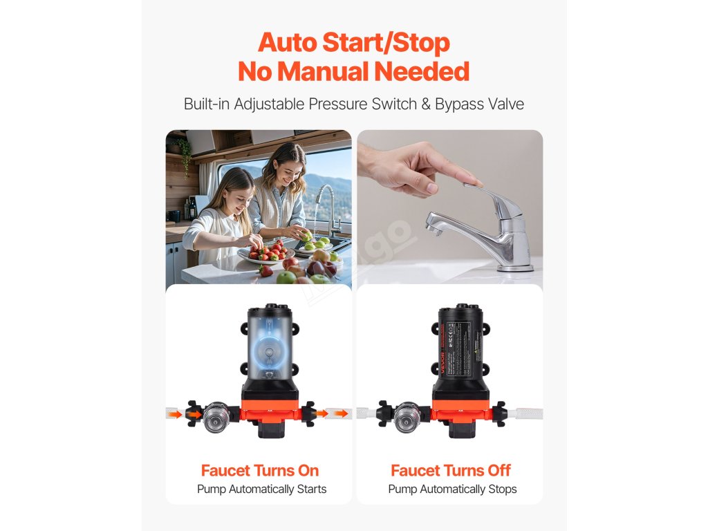 Toto čerpadlo zajišťuje vysoký průtok vody a maximální samonasávací výšku 10 stop bez nutnosti předběžného nasávání. Automaticky se spouští a zastavuje na požádání, což podporuje krátké běhy na sucho. Díky vestavěné ochraně proti přehřátí a přetížení a tlakovému spínači zajišťuje stálý přísun vody pro vaše každodenní potřeby.