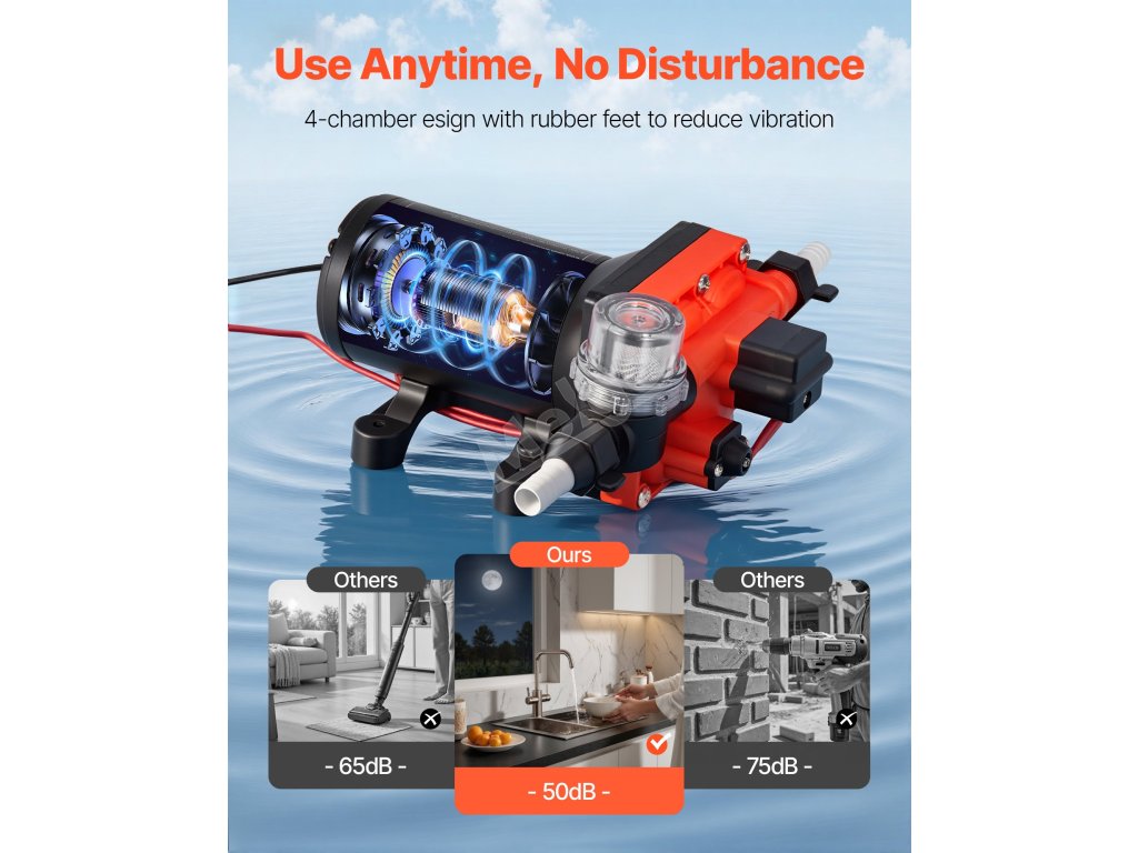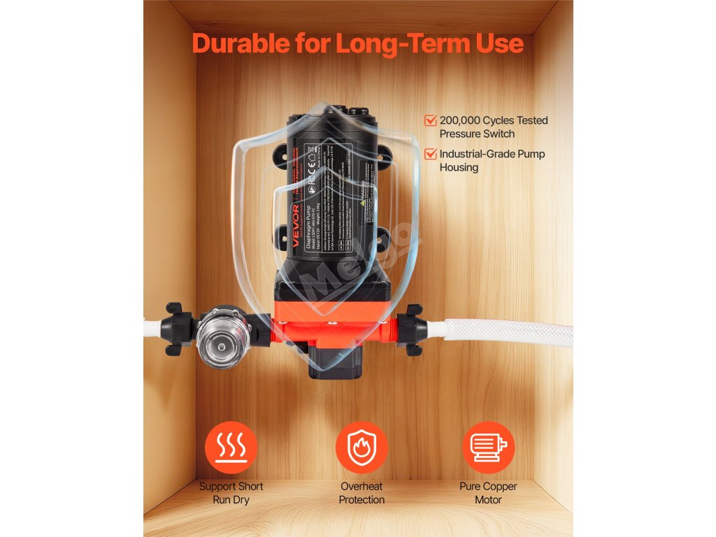 naše membránové vodní čerpadlo je dodáváno s odolným napájecím kabelem s pryžovou izolací. Je odolný proti roztržení a má dlouhou životnost a je navržen s ohledem na bezpečnost.