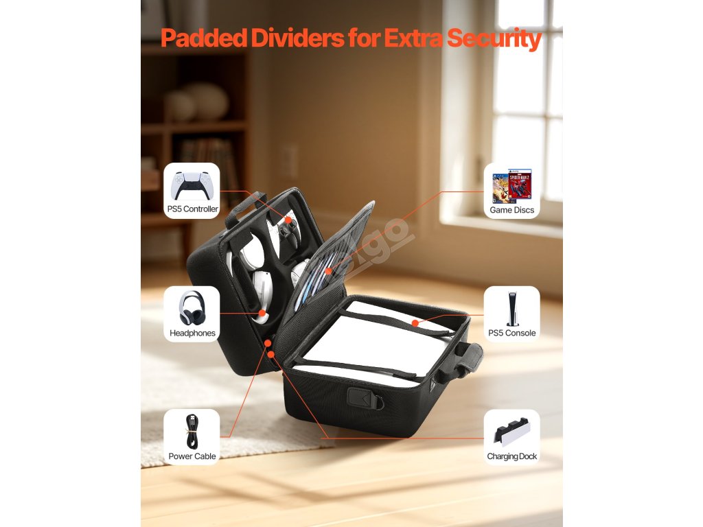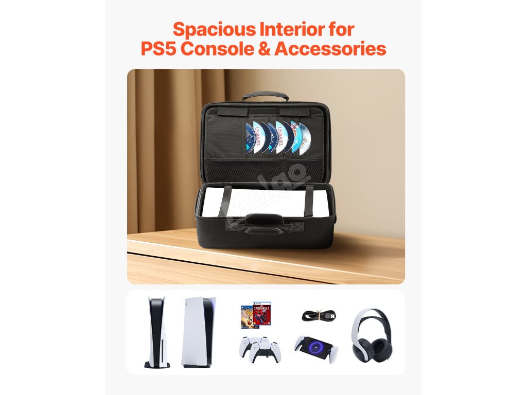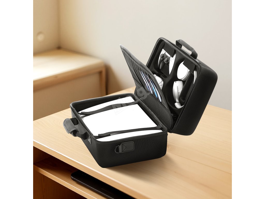Cestovní obal na PS5, nárazuvzdorný EVA, měkký vnitřek a přihrádky