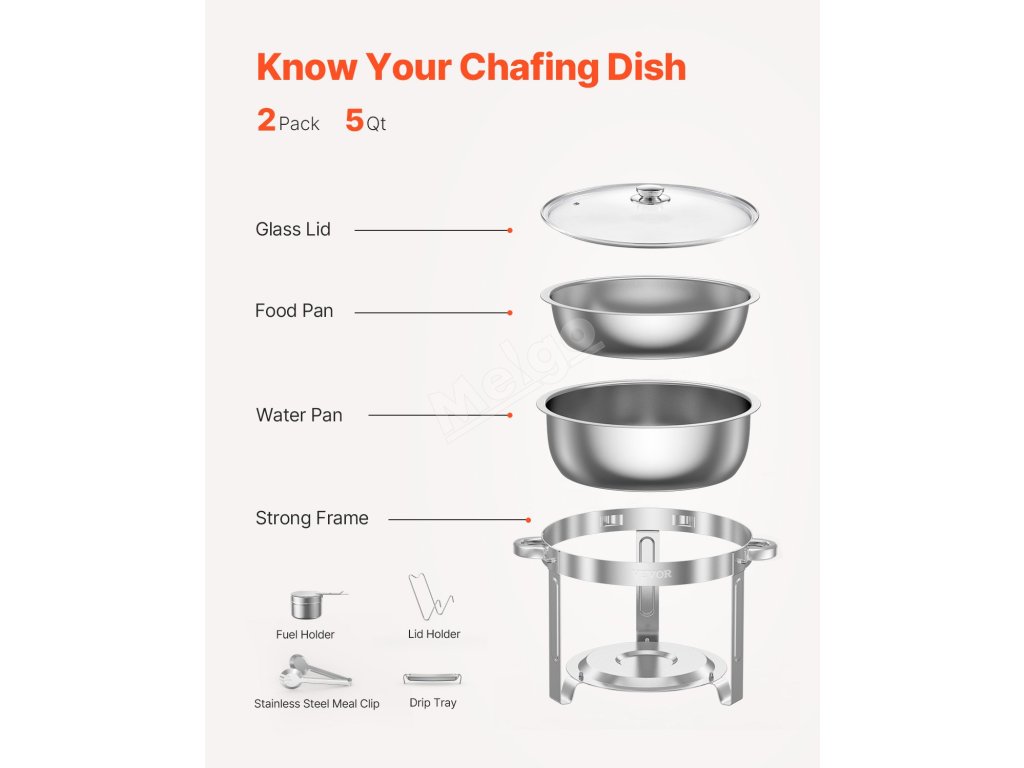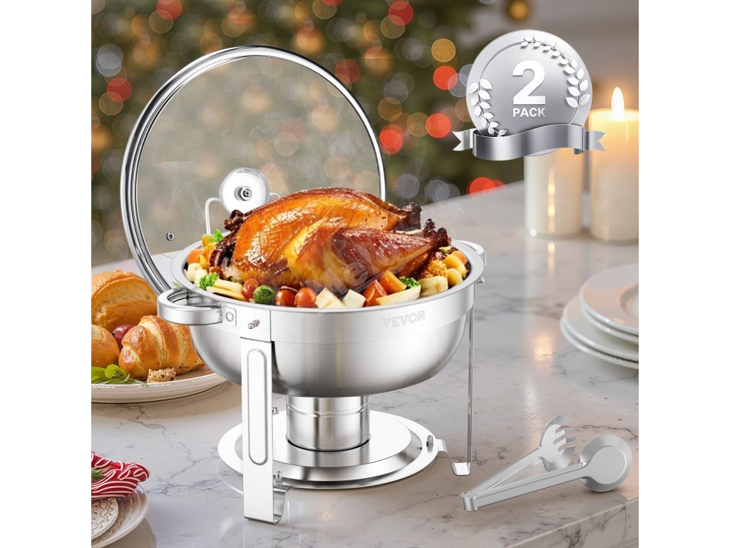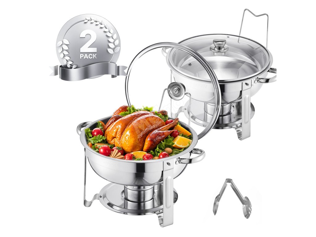 Chafer na jídlo 2 ks, 5 qt, nerez, 2 pánve, průhledné víko
