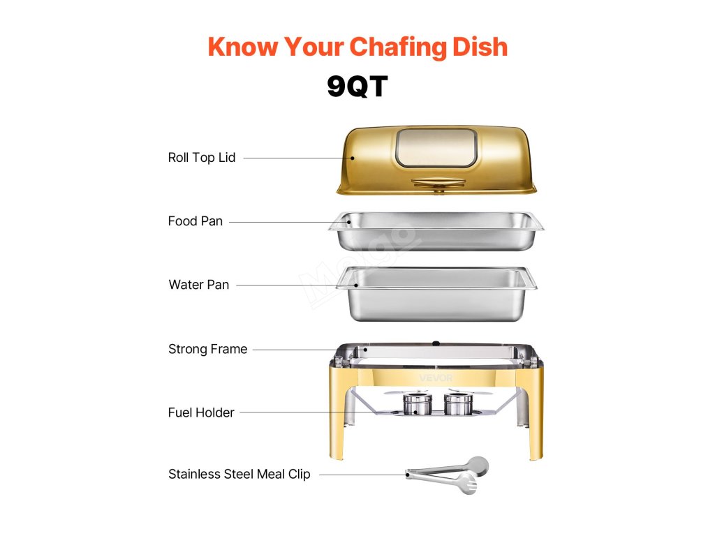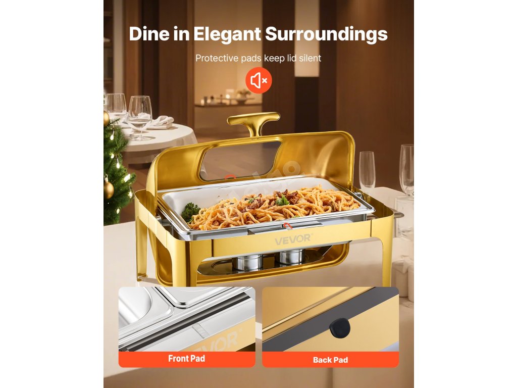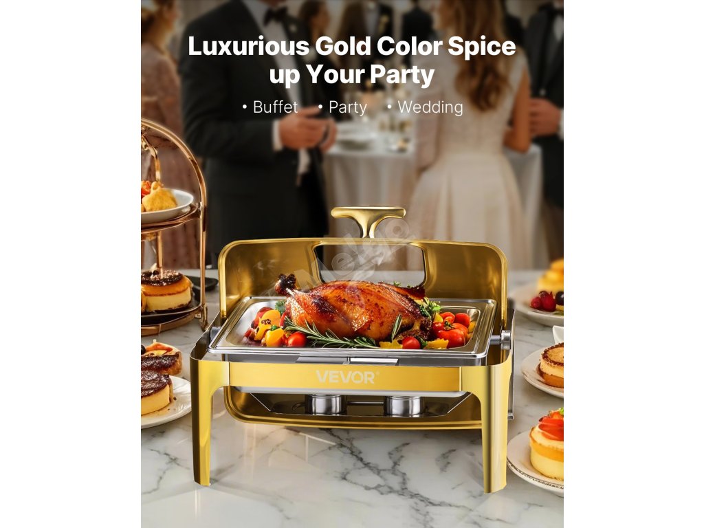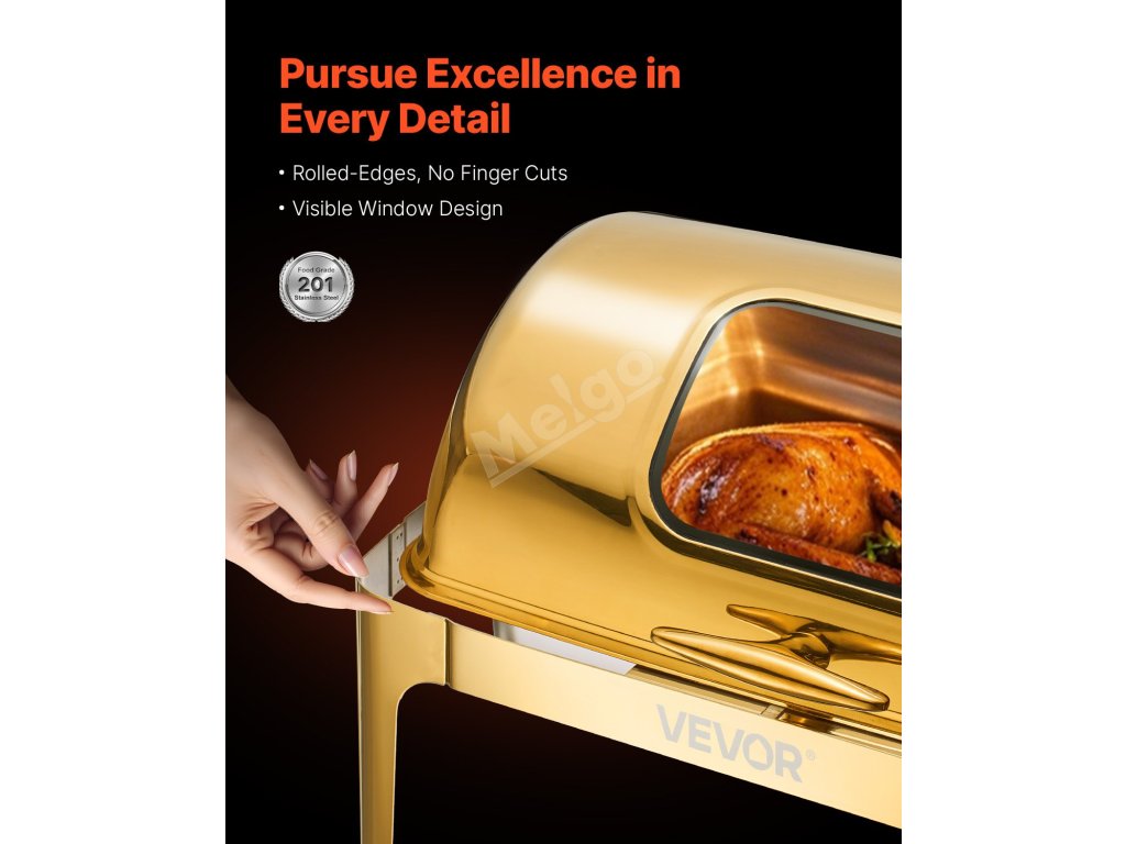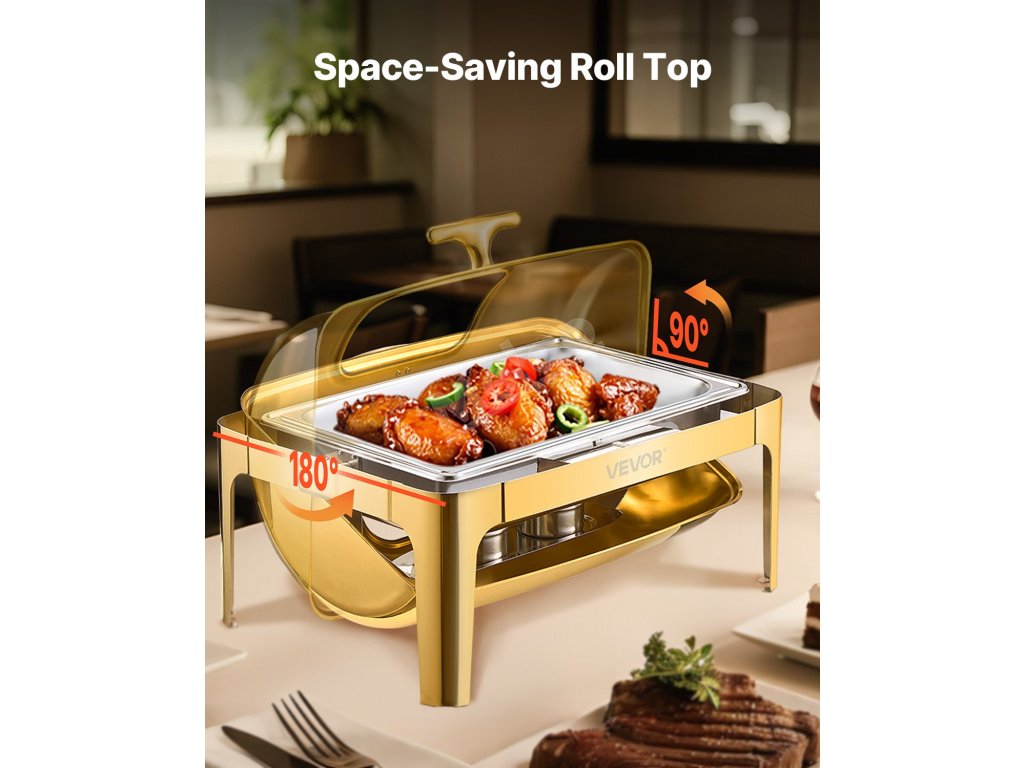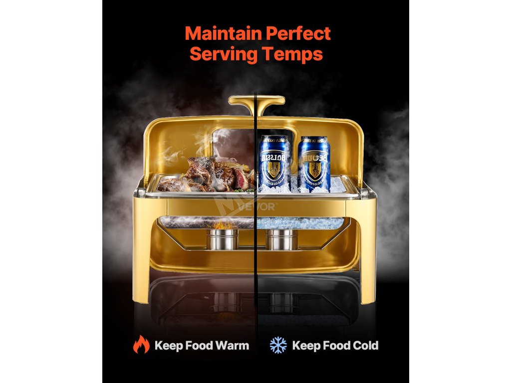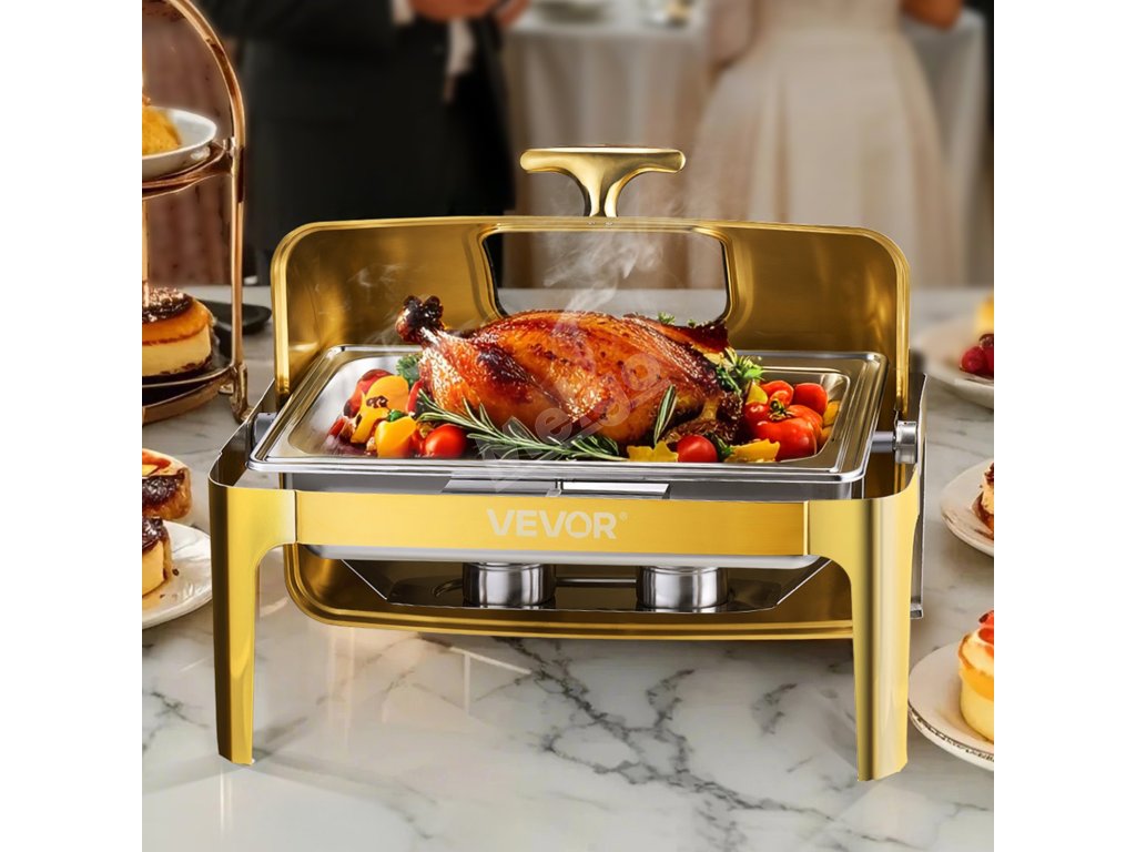 Chafing dish 9Qt nerezová ocel, rolovací víčko, plná pánev, stojan