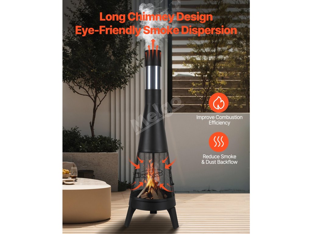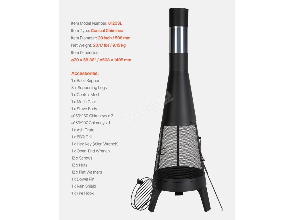 Vylepšete svůj venkovní zážitek s naší odolnou chiminou, která je odolná vůči vysokým teplotám! Je vyrobena z prvotřídních materiálů a dodává se s vodotěsným úložným pláštěm pro dlouhodobé používání. Díky 20palcovému kónickému designu s průhlednou síťovinou si můžete užívat plameny, zatímco grilovací plocha vám usnadní grilování.