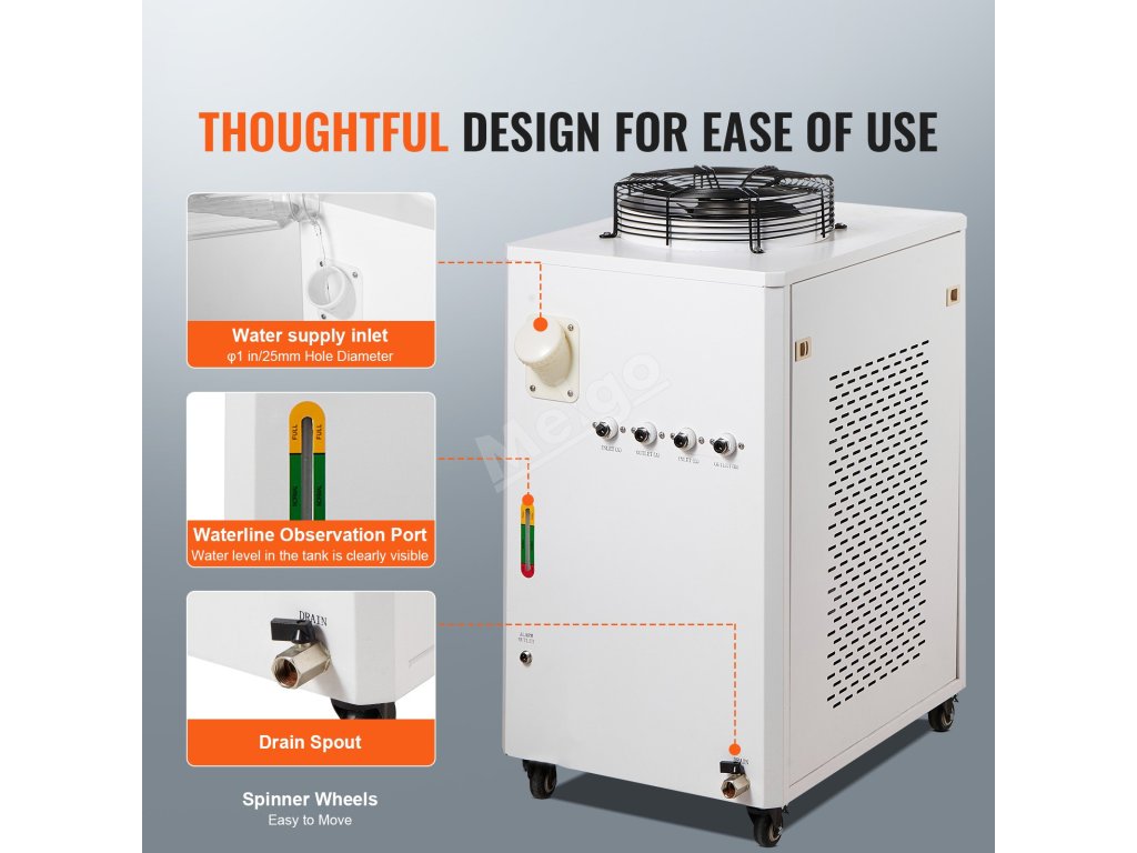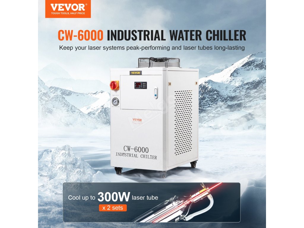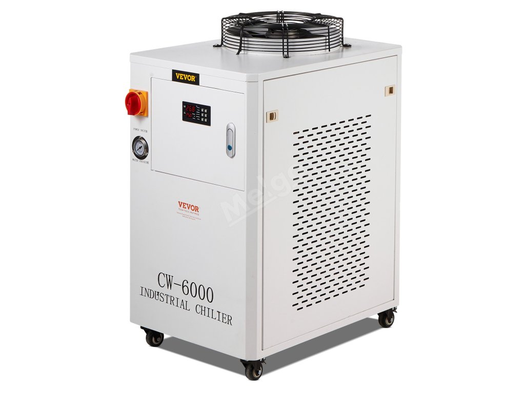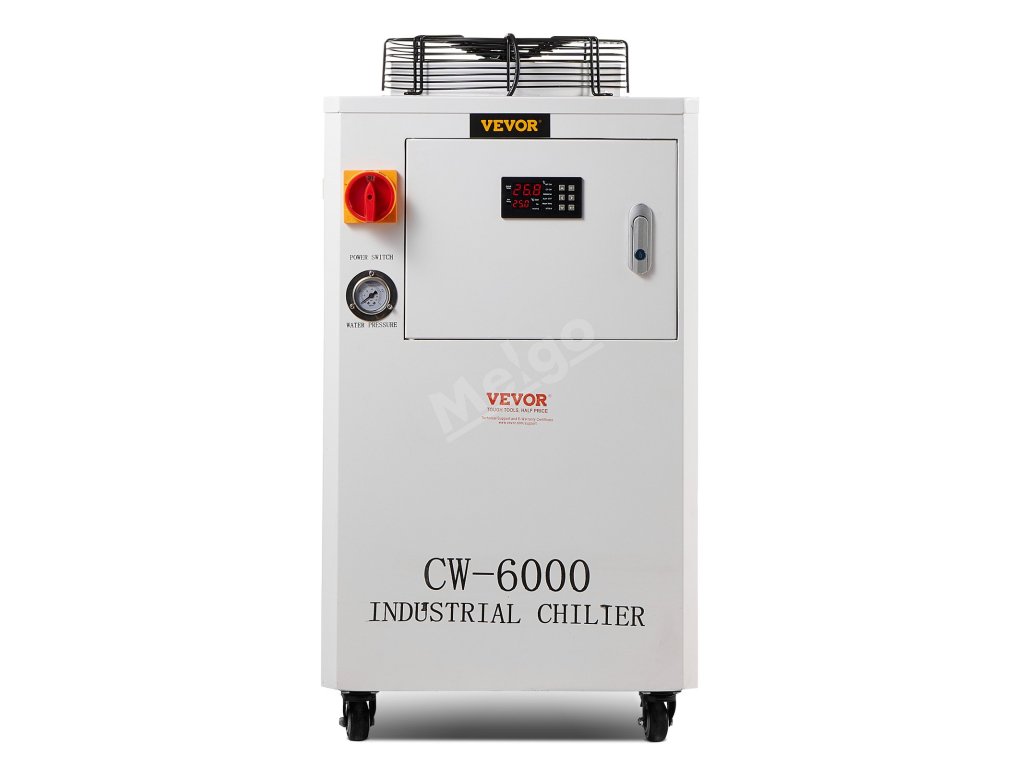 Náš průmyslový chladicí systém CW-6000 je vybaven vestavěným kompresorem pro stroje vyžadující kompaktní řešení chlazení vodou. S 15litrovou nádrží na vodu a vestavěným chladicím ventilátorem pro vynikající ventilaci je ideální pro 2 sady laserových gravírovacích strojů CO₂ s laserovými trubicemi do 300 W.