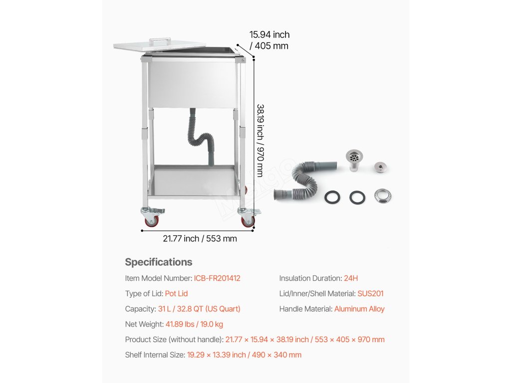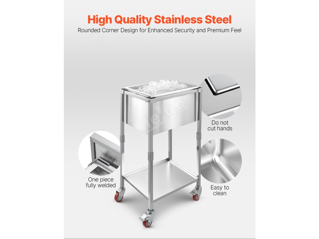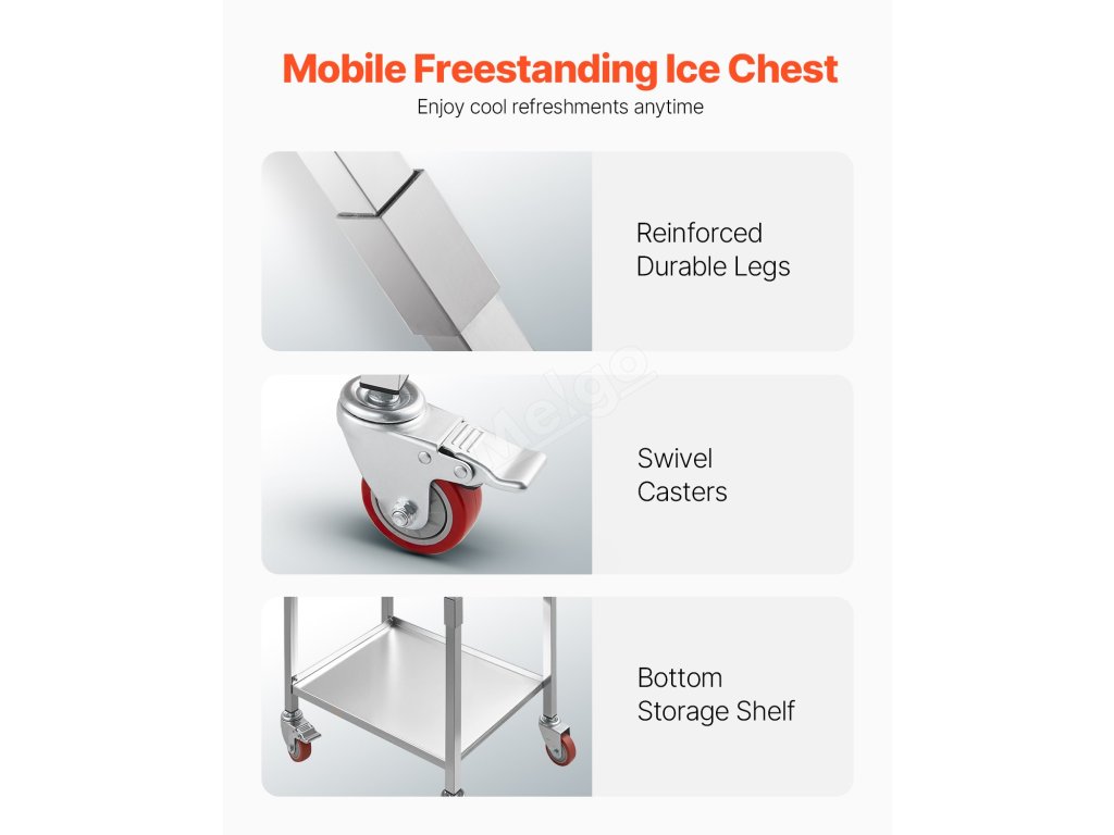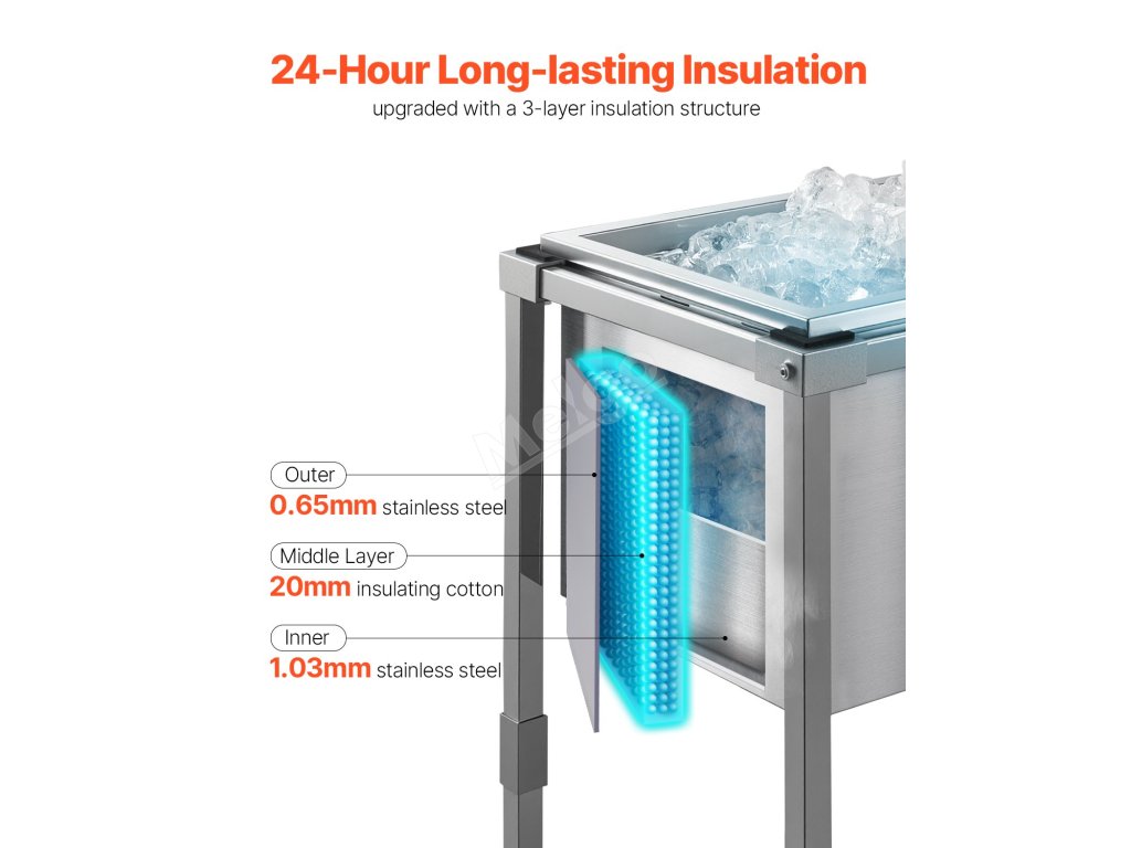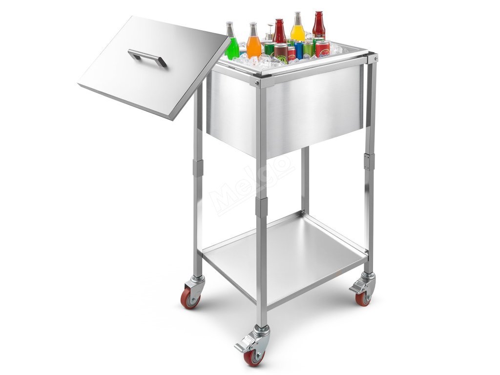 Velkokapacitní nerezový pojízdný chladicí vozík na led, který pojme značné množství ledu a dokonale splní vaše komerční i domácí potřeby. Dokáže zajistit více než 24 hodin izolace.