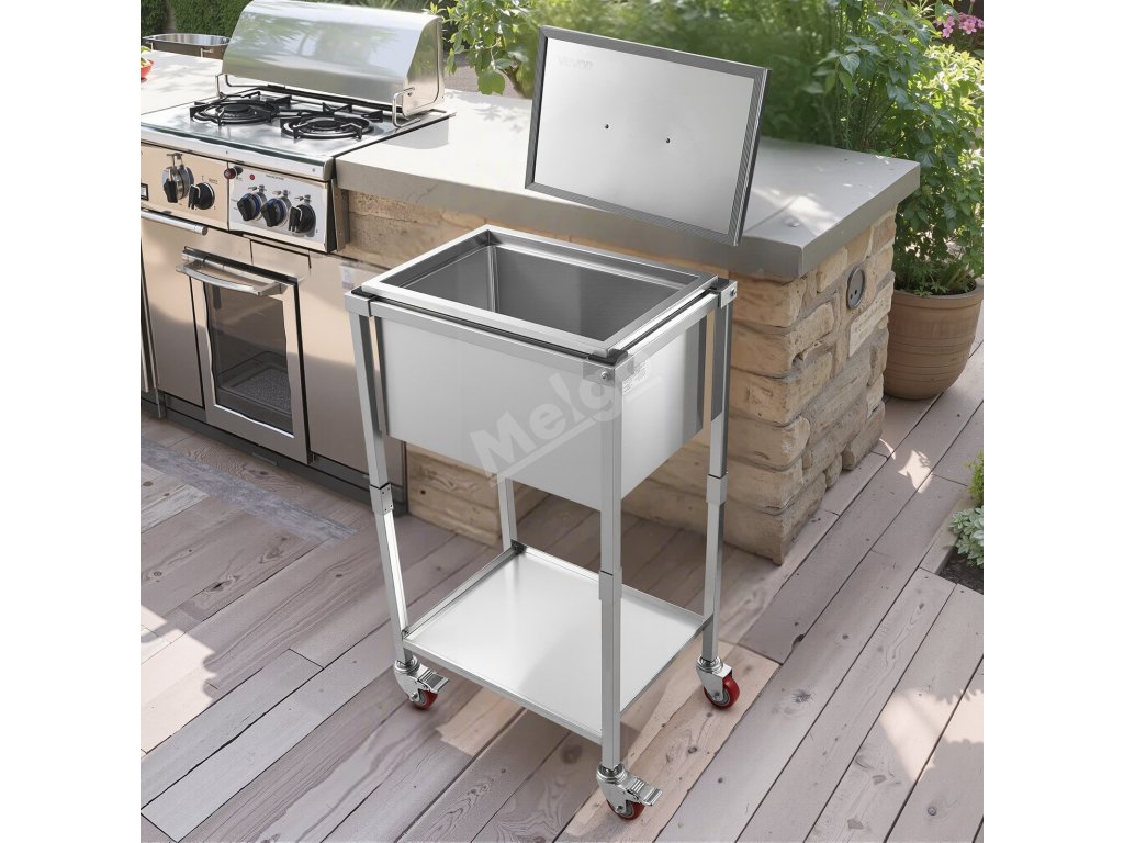 Chladící box na kolech nerezový, 31L, 22"L×16"W×38"H s poličkou