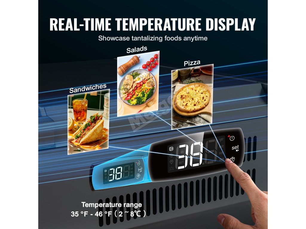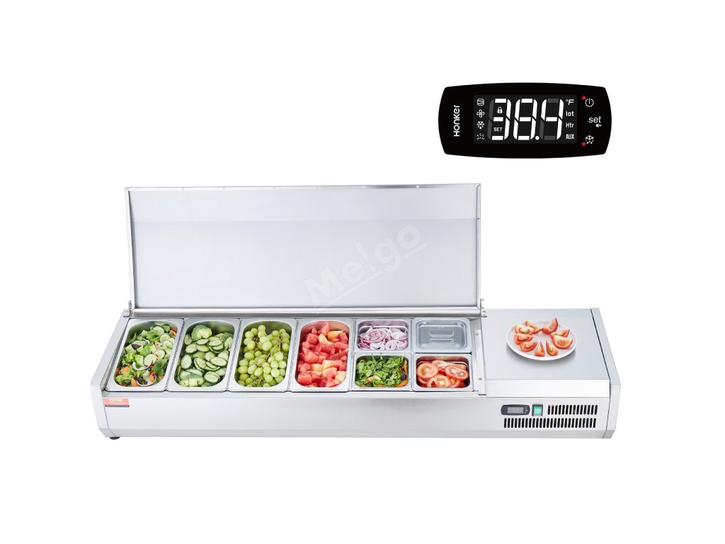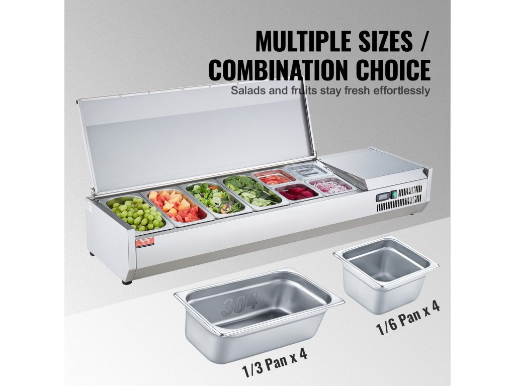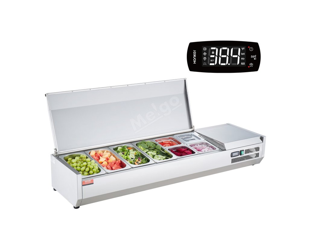 Trápí vás tyto problémy - obtížné udržování čerstvosti surovin, neúplné vystavení surovin a náročné čištění a údržba? Pultová chladicí stanice na přípravu koření VEVOR, určená pro komerční použití, optimalizuje uspořádání prostoru pro skladování různých čerstvých ingrediencí.