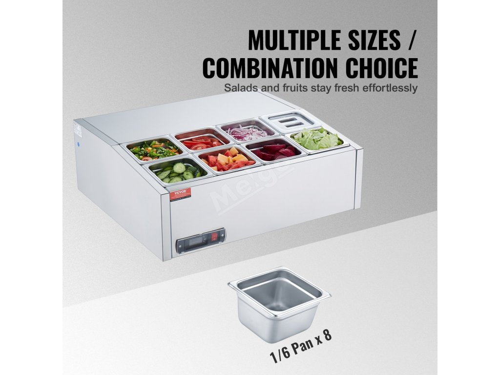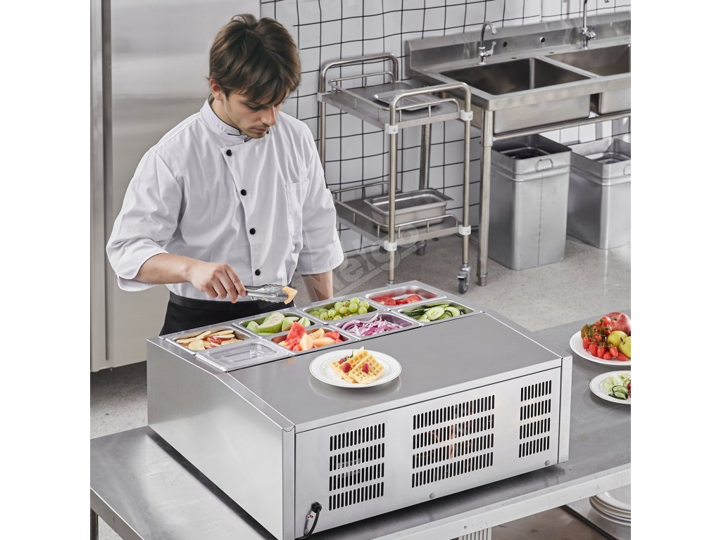 Chladící pult na přílohy 145 W, 8×1/6 pánve, 304 nerez, PC víko