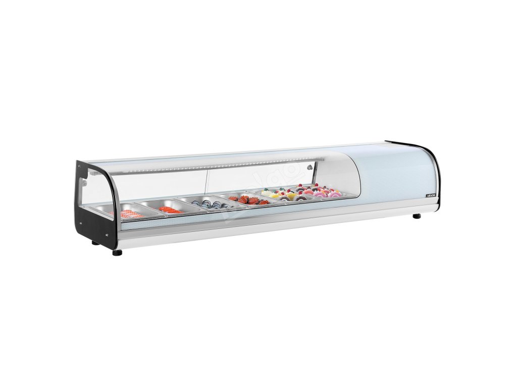 Chladící vitrína na sushi 62L, 6-panová, oblé sklo, digit. regulace