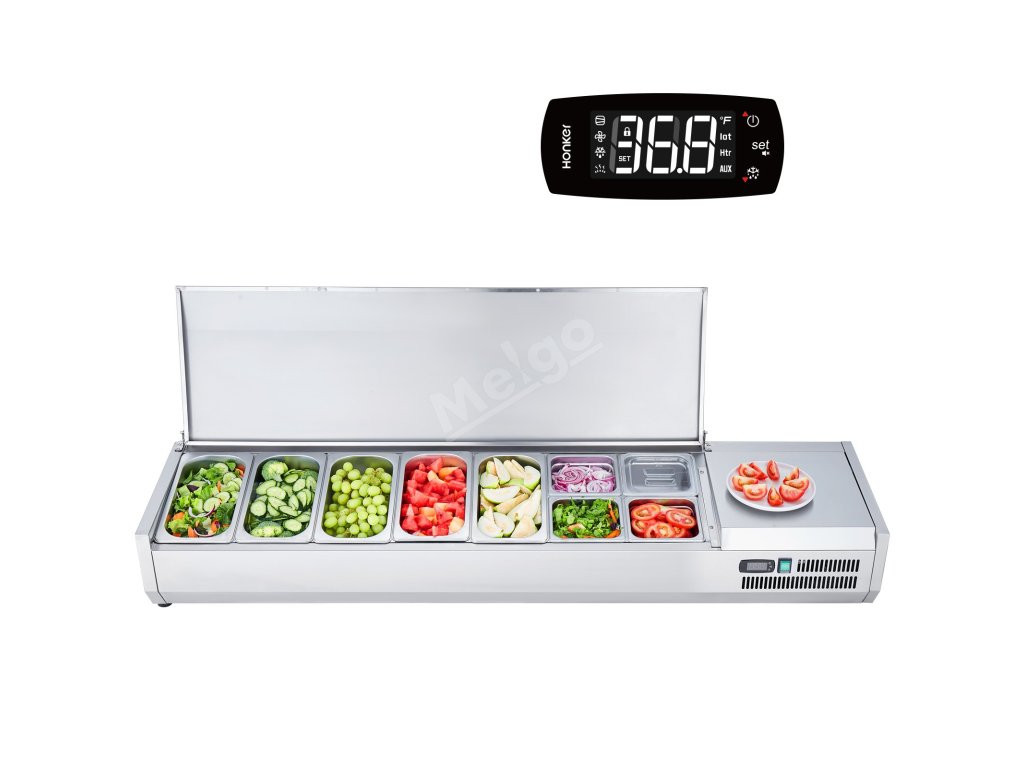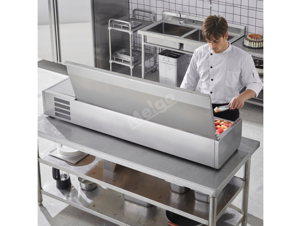 Chladnicí pult na oblohy 165 w, 5×1/3 a 4×1/6, 304 nerez s pc krytem