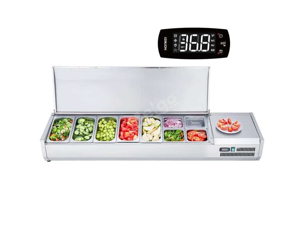 Toto zařízení je vybaveno vysoce účinným kompresorem, který zajišťuje rychlé chlazení, stabilní výkon a tichý provoz. Je ideální pro skladování položek, jako jsou nakrájená rajčata, salát, cibule, ovoce a zmrzlina.