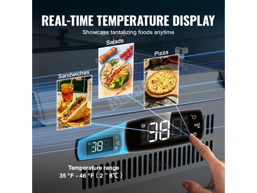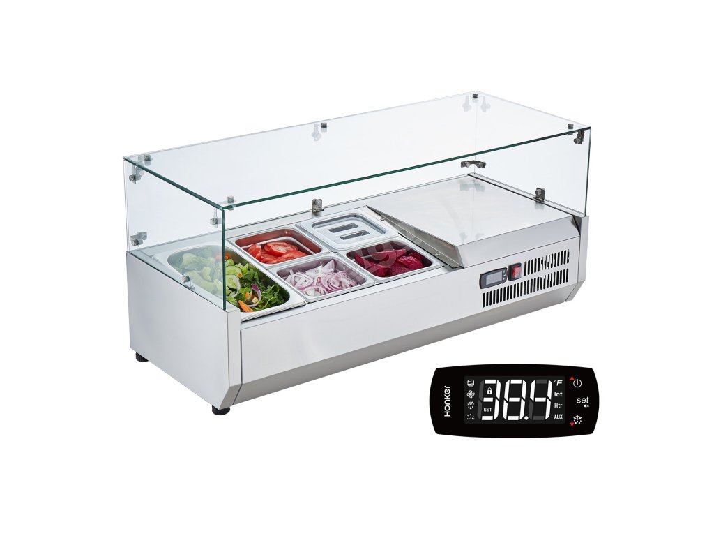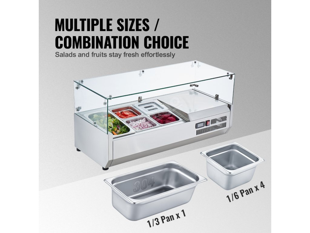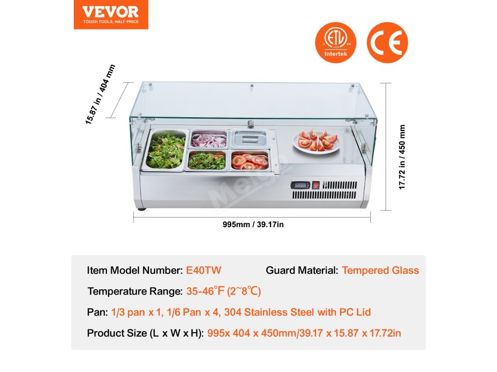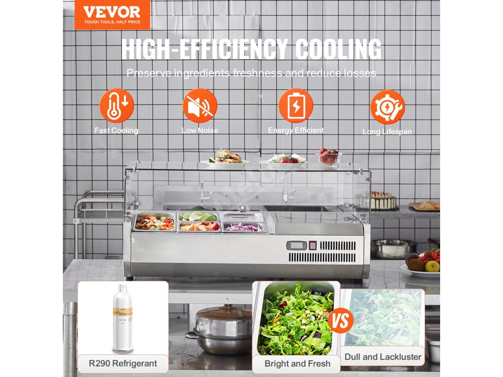 Trápí vás tyto problémy - obtížné udržování čerstvosti surovin, neúplné vystavení surovin a náročné čištění a údržba? Pultová chladicí stanice na přípravu koření VEVOR, určená pro komerční použití, optimalizuje uspořádání prostoru pro skladování různých čerstvých ingrediencí.