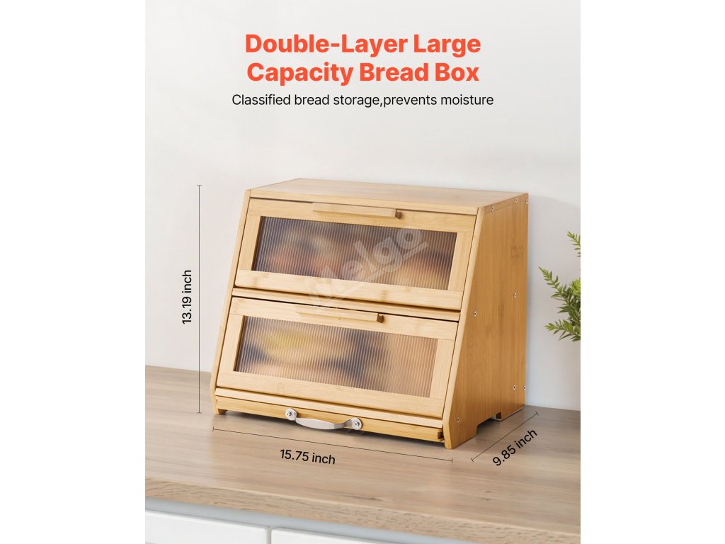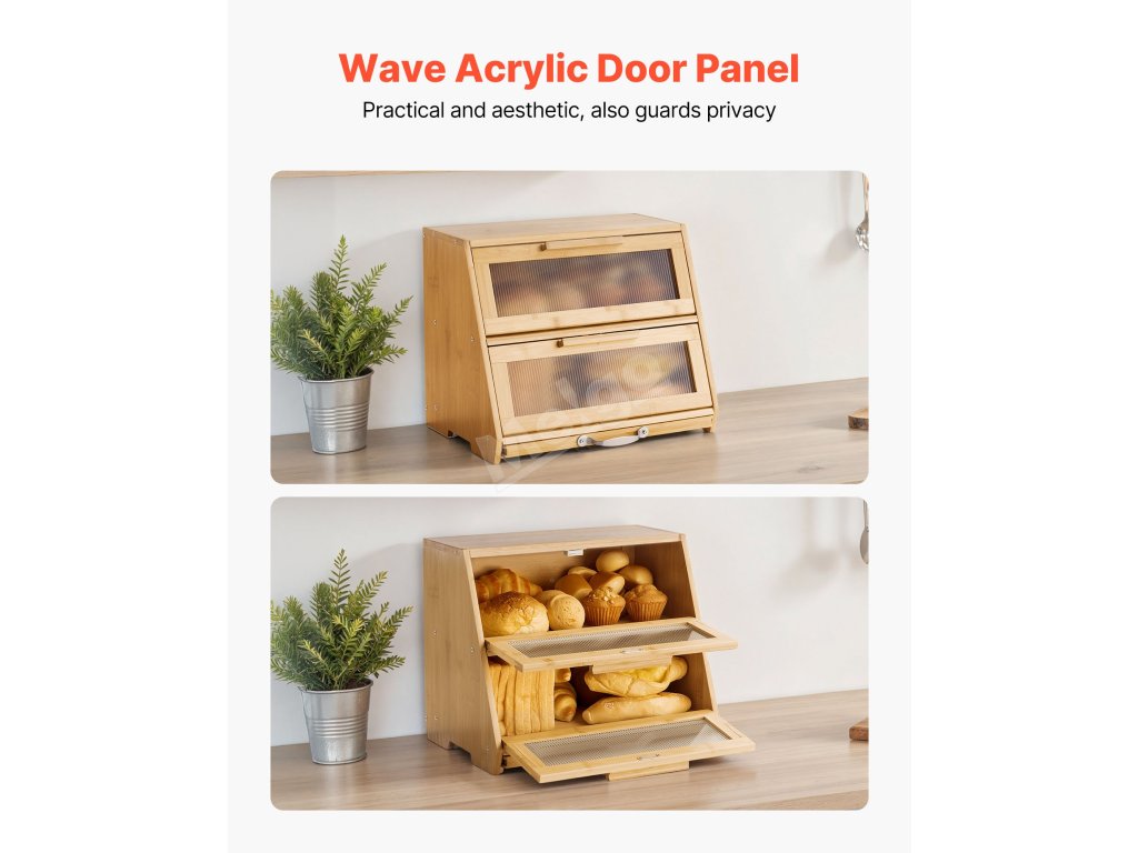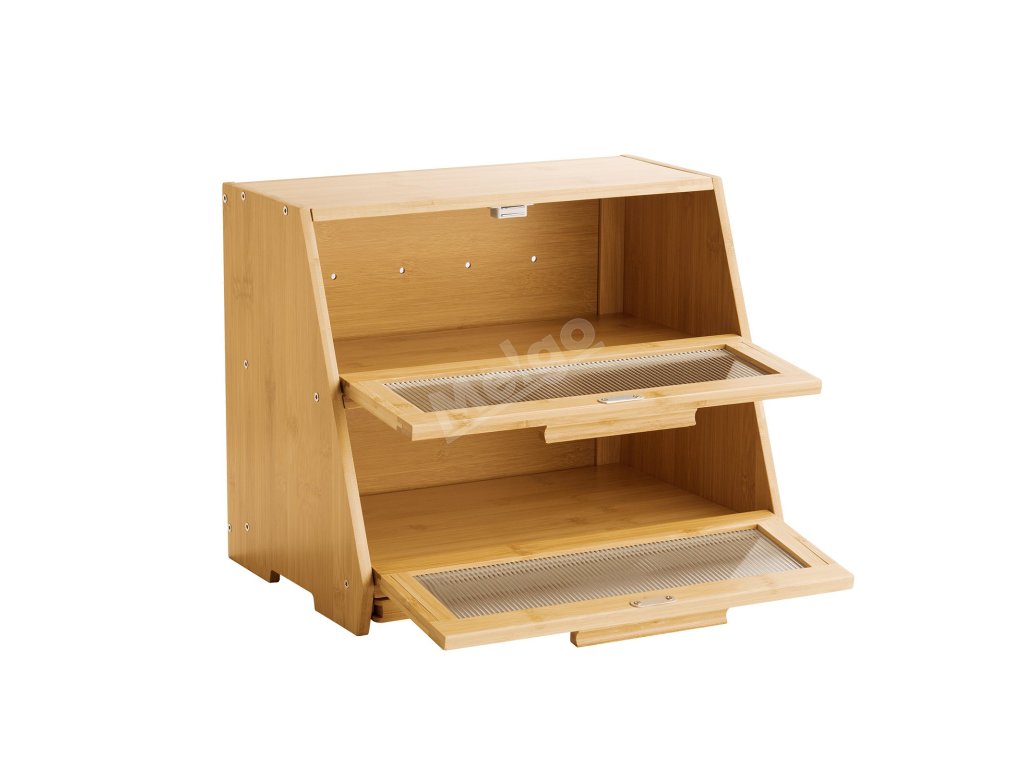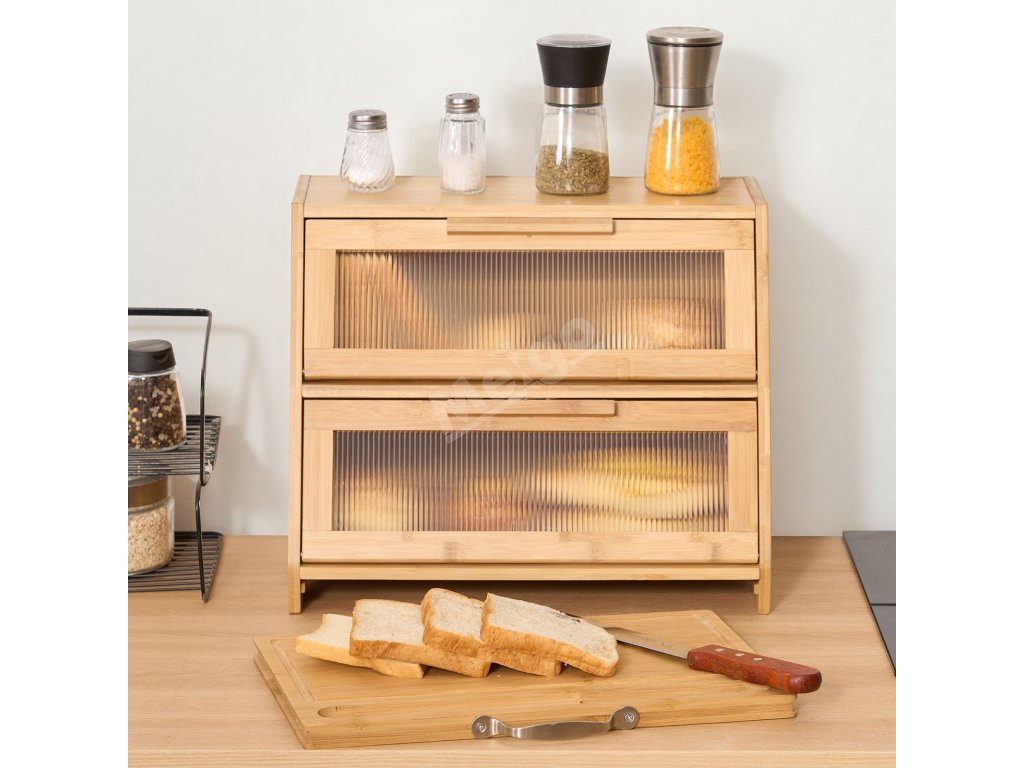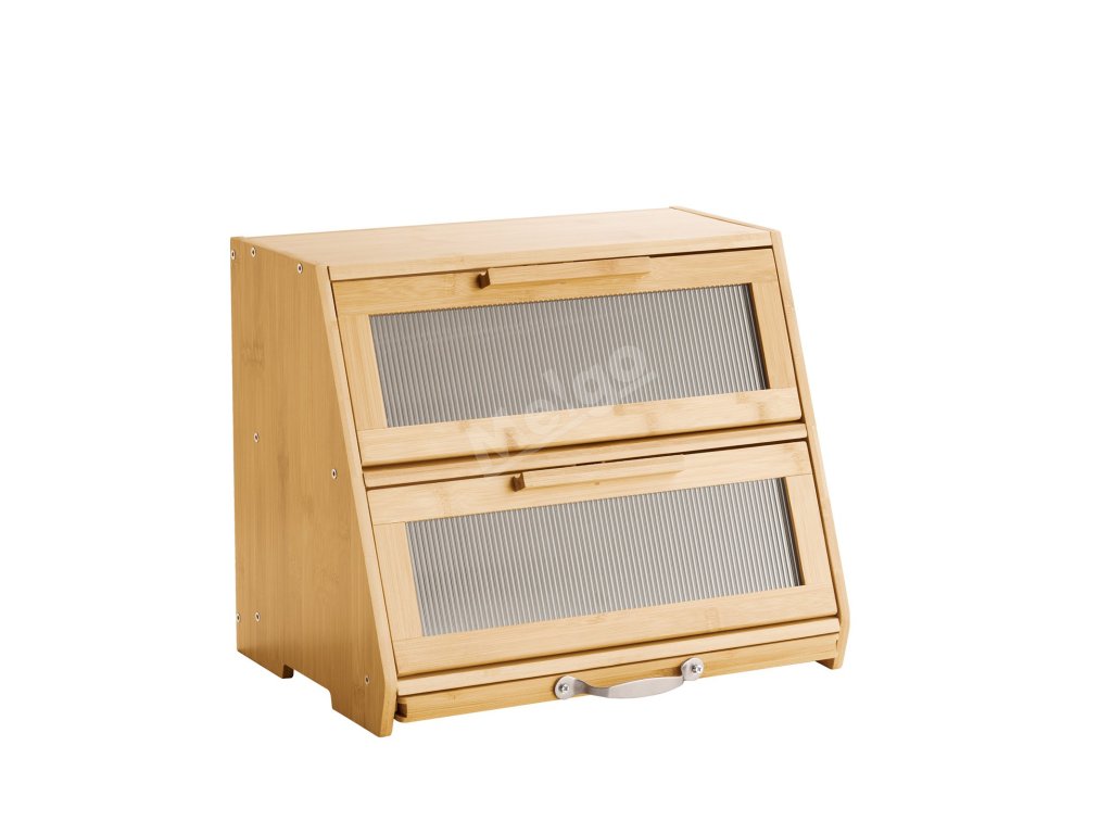 Chlebník dvouvrstvý bambusový, velká kapacita, akrylová dvířka