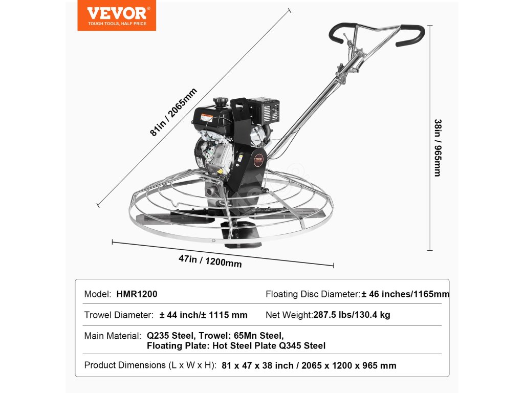 Choditelná betonová hladička 46” 14HP benzínový motor, mísa a nůž