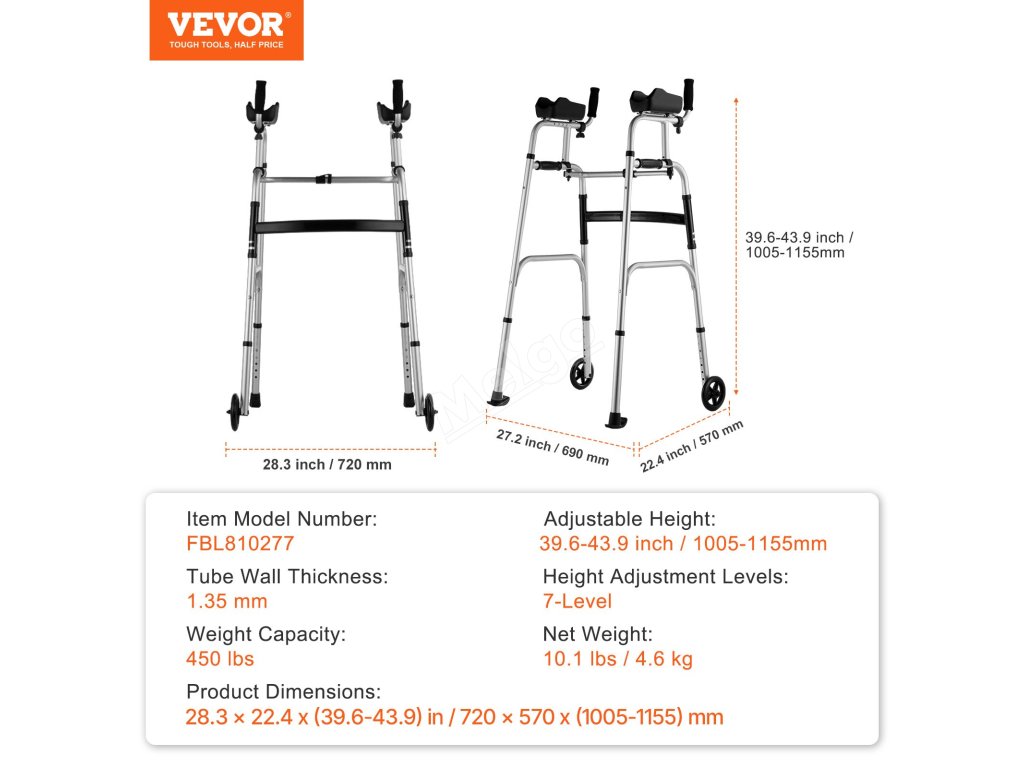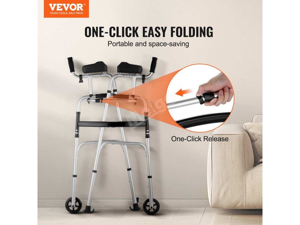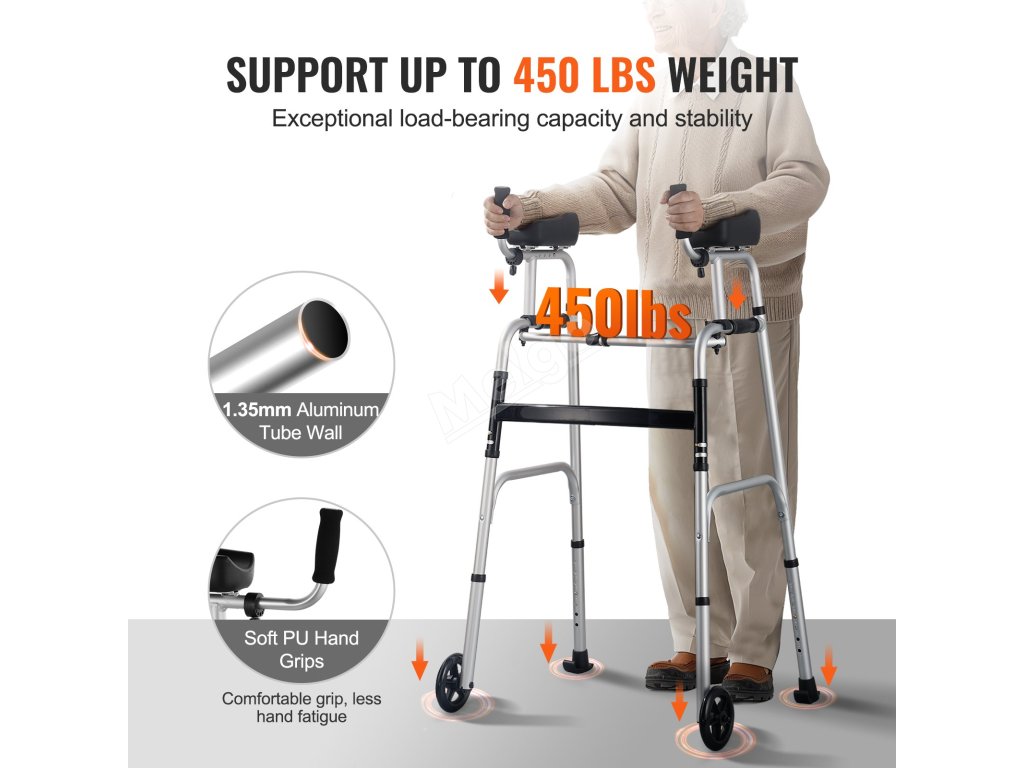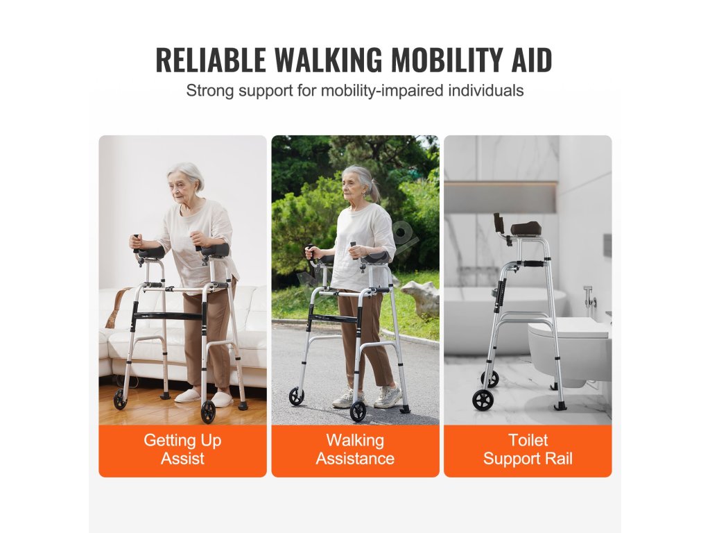 Skládací chodítko VEVOR 2 v 1 - váš dokonalý společník pro zlepšení mobility. Díky snadnému skládání, nastavitelné výšce a délce područek je navrženo pro snadné skladování a individuální použití. S nosností až 450 kilogramů poskytuje spolehlivou stabilitu seniorům a osobám se zdravotním postižením.