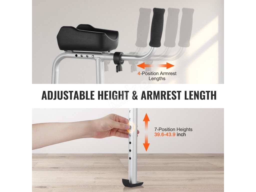 Díky 7stupňovému nastavení výšky v rozmezí od 39,6 do 43,9 palce a 4stupňovému nastavení délky opěrky rukou je naše lehké hliníkové chodítko vhodné pro uživatele různé výšky. Přizpůsobte si jej na požadovanou úroveň, čímž zajistíte, že bude dokonale vyhovovat vašim individuálním potřebám.