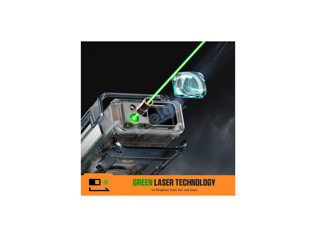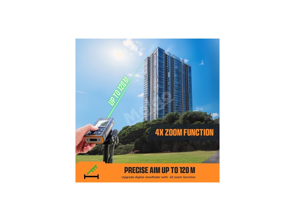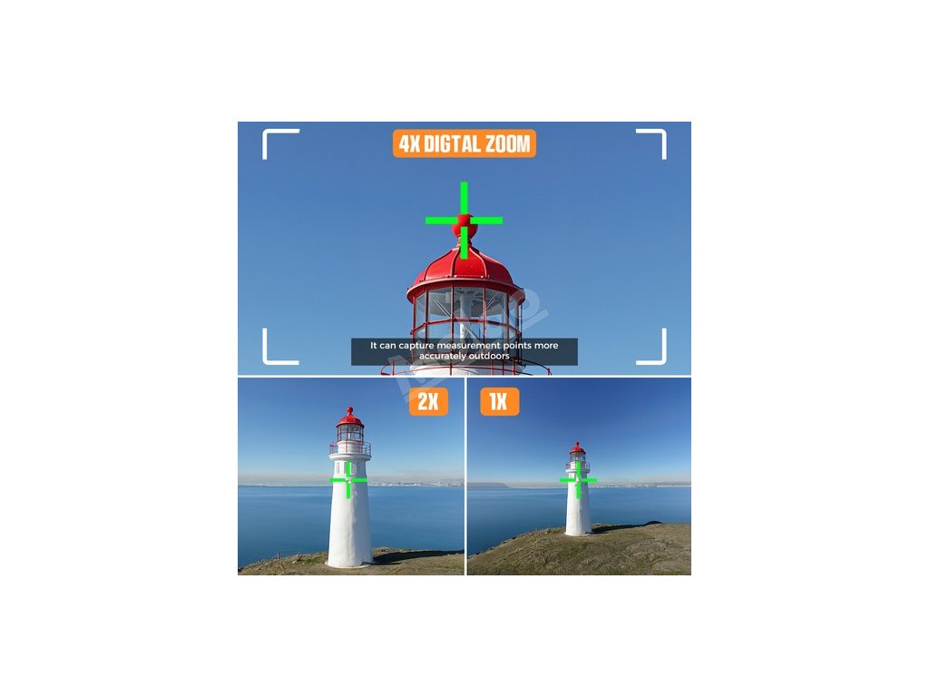 Tento digitální zaměřovač je vybaven vestavěným digitálním fotoaparátem se 4násobným zoomem a zaměřovacím křížem na obrazovce, který usnadňuje lokalizaci laserového bodu. Zaručuje přesné venkovní měření i za jasného slunečního světla. Úroveň bezpečnosti - třída II, výstupní výkon 1 mW.