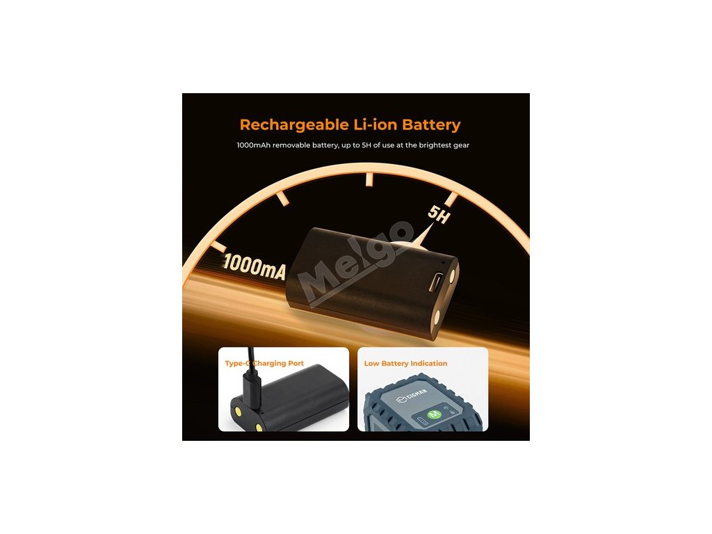 Tato laserová vodováha CM-G02A je vybavena jednou vyměnitelnou Li-ion baterií s kapacitou 1000 mA, jedna baterie může po úplném nabití podporovat nepřetržitý provoz výrobku po dobu 5 hodin při maximální intenzitě světla, rozhraní typu C je vhodné pro rychlé nabíjení.