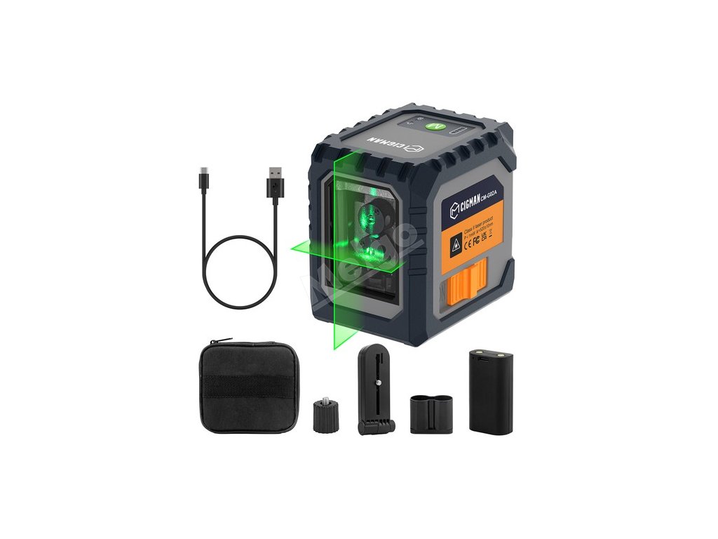 | Obsah balení | 1 x Laserová vodováha CM-G02A 1 x přenosná taška 1 x magnetický držák ve tvaru L 1 x kabel typu C 1 x Návod k použití |
